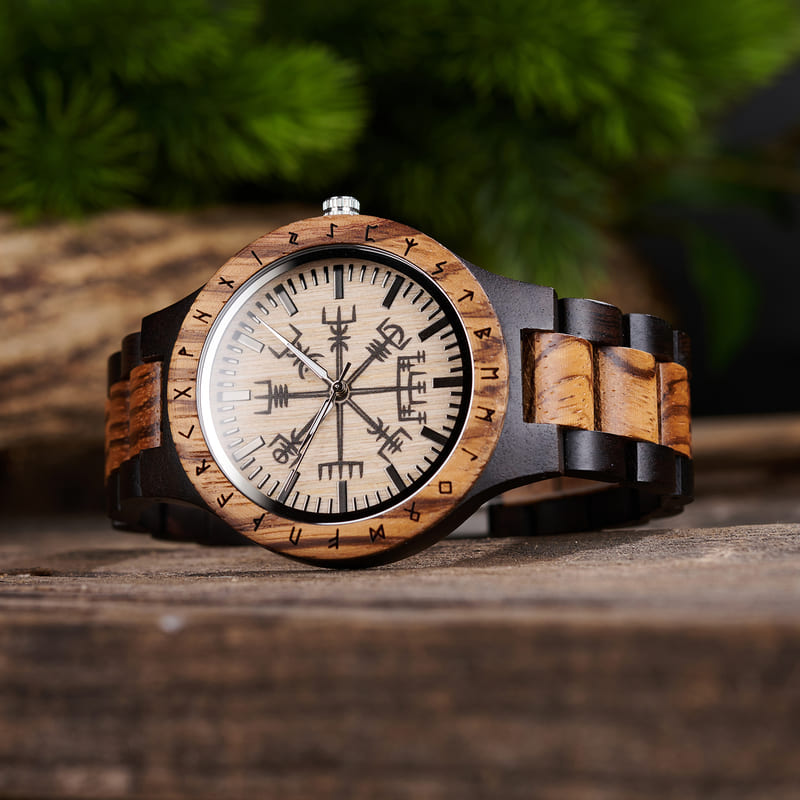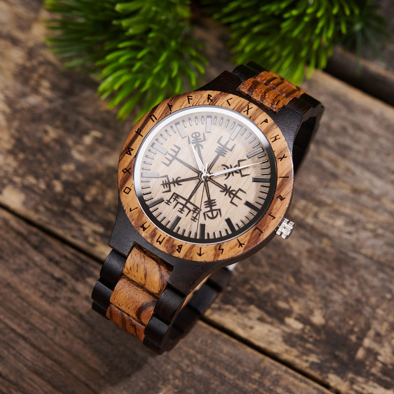 Personalized Viking Compass Vegvisir Handmade Wooden Watch