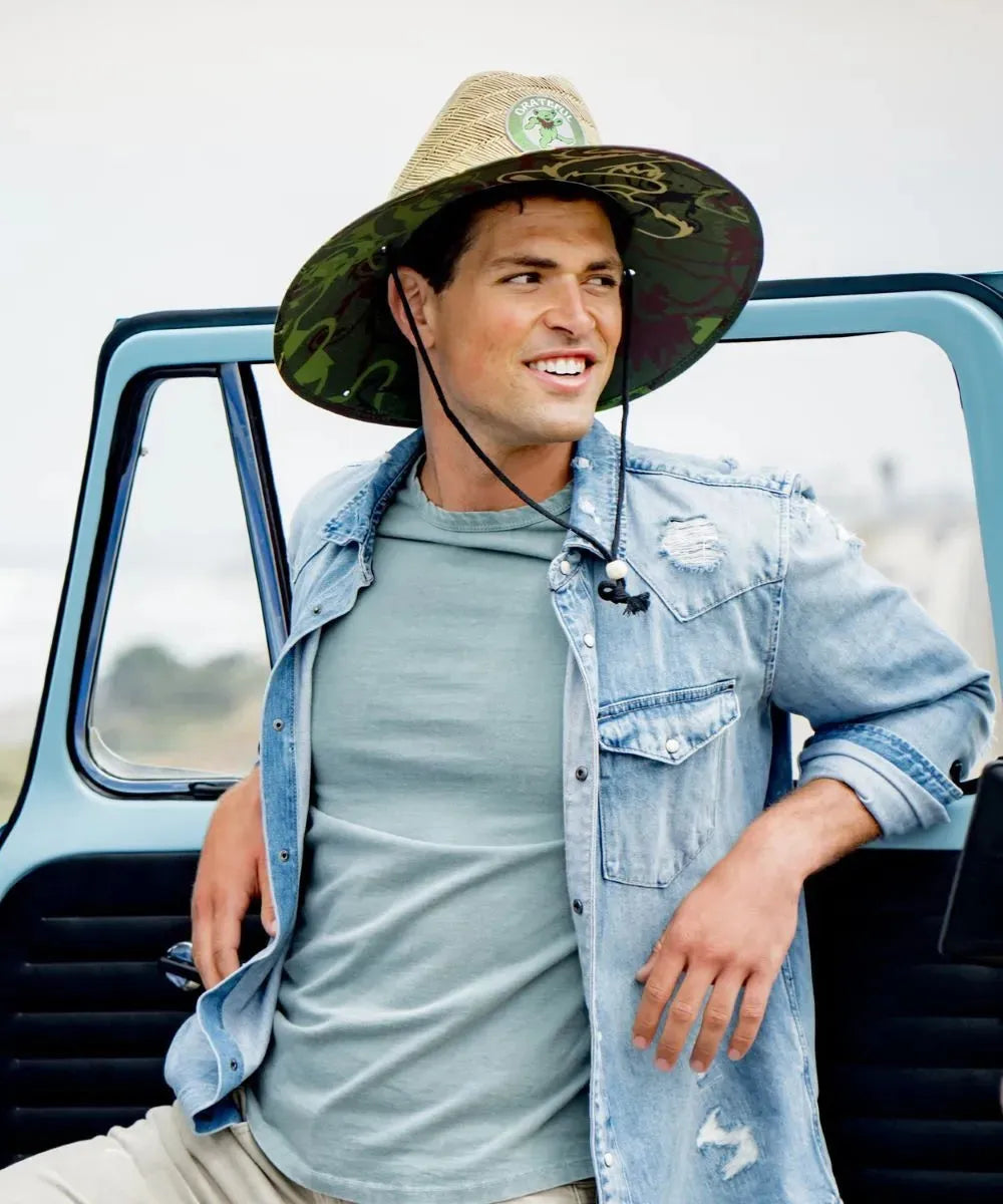 The Peter Grimm Grateful Dead River Straw Lifeguard Hat is meticulously crafted from 100% Rye Straw, ensuring durability and breathability under the sun. Its adjustable chin cord offers a customizable fit, perfect for any adventure. Adorned with the iconic Grateful Dead Bear Patch, this hat pays homage to the legendary band's legacy. Featuring an underbrim design, this hat showcases Grateful Dead bears outlined in various colors such as brown and green, set against a green background, adding a unique and touch to its appearance. With UPF50+ sun protection, this hat offers reliable shielding against harmful UV rays, making it an ideal companion for outdoor activities. Its brim size of 4.5 inches provides ample coverage, ensuring enhanced protection from the sun's rays. Designed to fit most head sizes, this hat from the Peter Grimm x Grateful Dead Collection combines style, functionality, and a nod to music history, making it a must-have accessory for any Grateful Dead enthusiast.