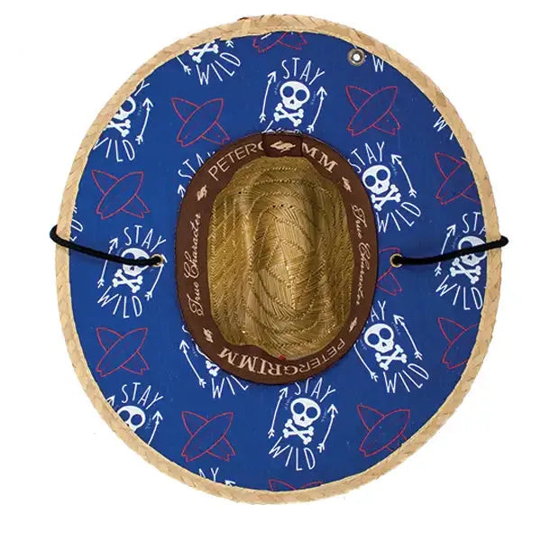 Perfect for your wild child, the Peter Grimm Komander Jr. - Children's Straw Lifeguard Hat is all about embracing the adventurous spirit. Let your little one enjoy the summer and soak in the sun with this edgy hat that's designed to stand out. Made from 100% rush straw, it features a bold "Stay Wild" blue skull & crossbones patch that adds a rebellious flair.