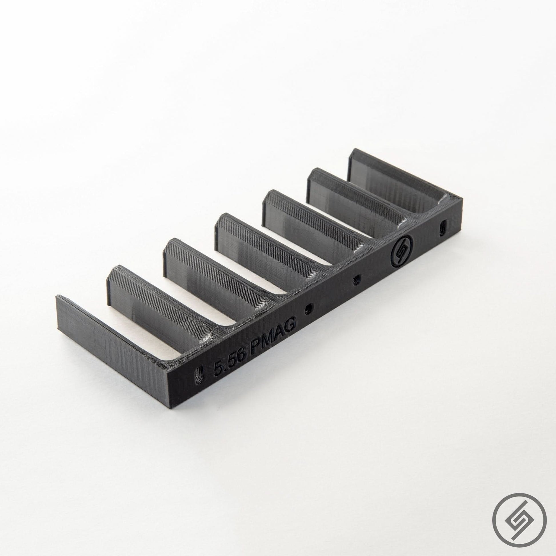 Our best-selling PMAG AR-15 Mount (6x) is the ultimate storage solution for your .223/5.56 Magpul Gen M2 and M3 magazines. Designed to hold six mags securely in a horizontal wall-mounted layout, this rack is perfect for gun walls, safes, workbenches, or armories where organization and quick access matter. Each mag locks in with a satisfying snap, keeping them secure and lined up for rapid reloads or clean display.