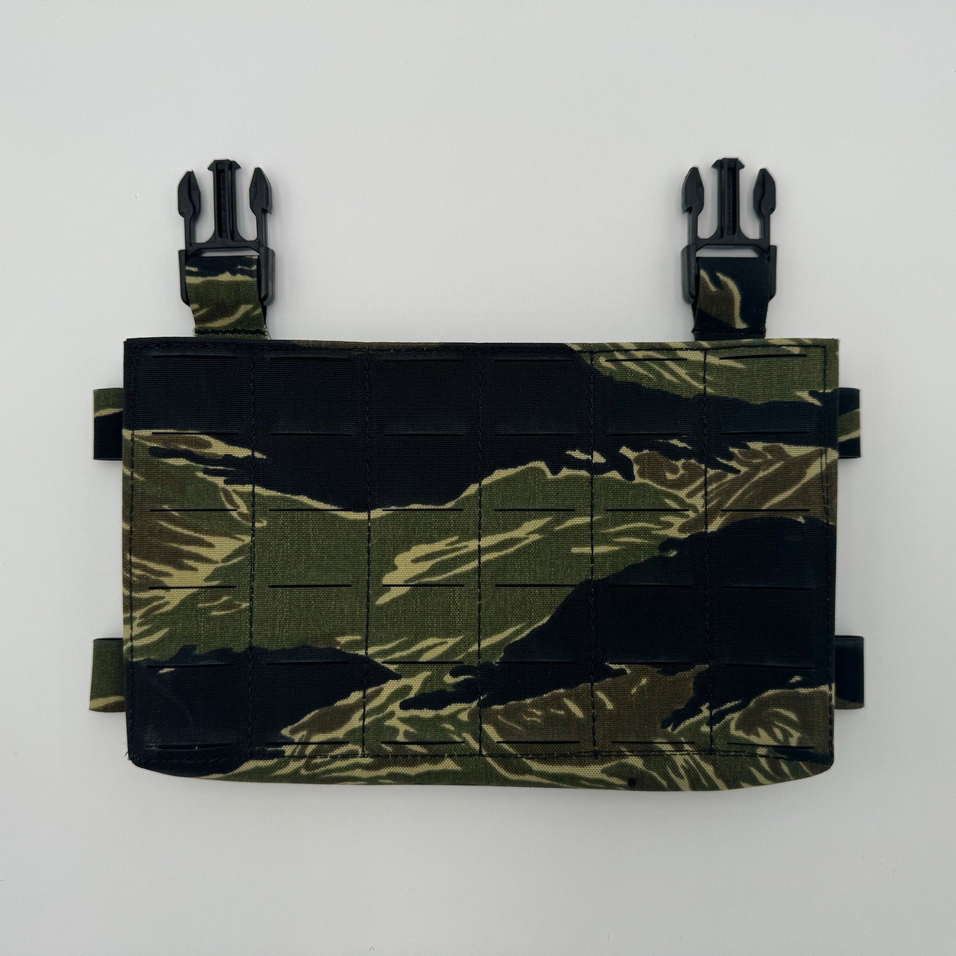 At the core of the MAC-V system is the primary placard. Made completely from B52 500d laminate material it is compatible with all our chest rig components as well as other swift clip attachment style plate carriers. It can be used with triple 5.56mm, double .308cal, and quad mag sub-gun inserts.