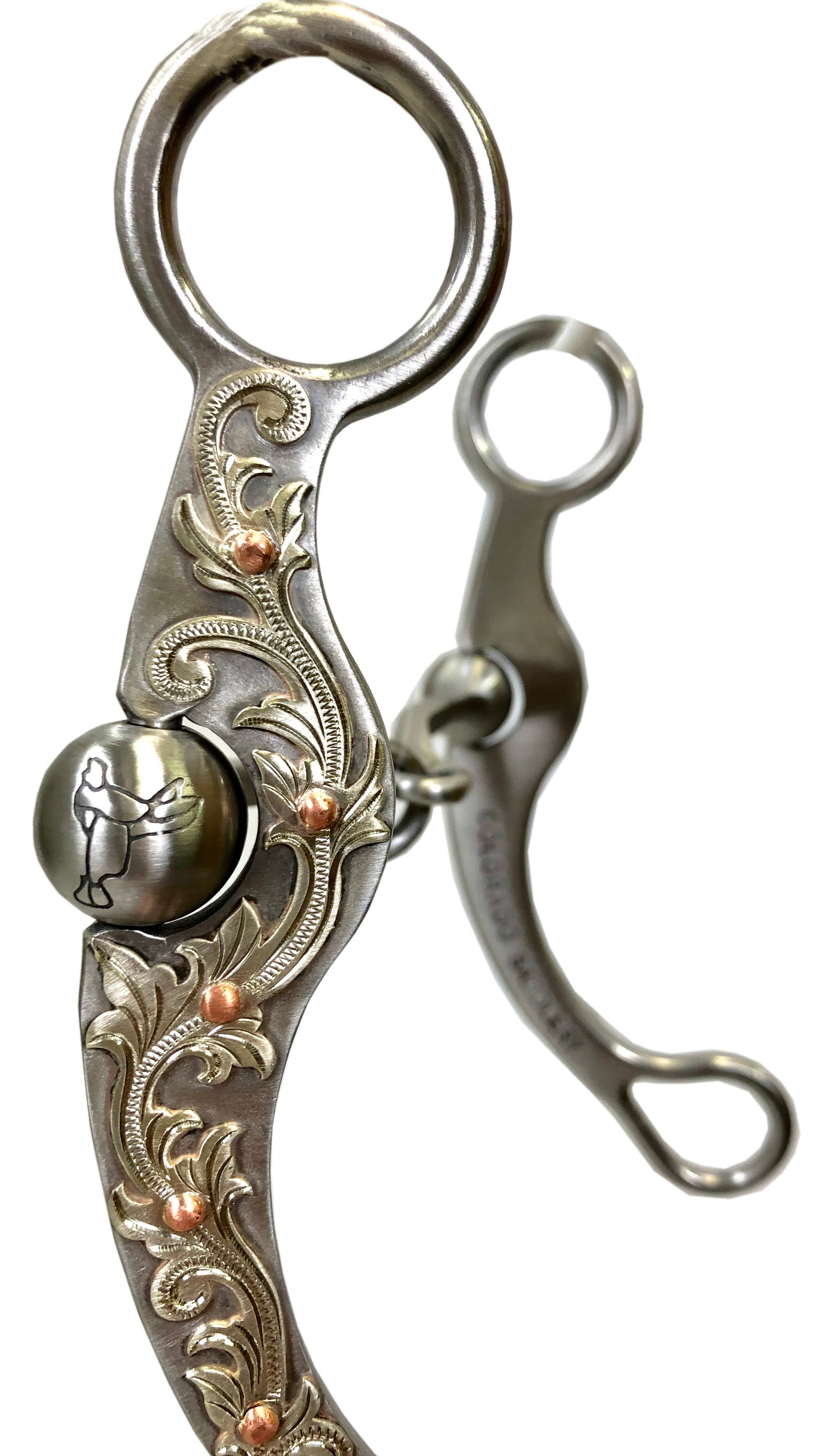 This bit has stainless steel shanks placed at an angle for precise control. It has striking stainless steel & copper accents and a 5” SS Square Lifesaver Mouth.