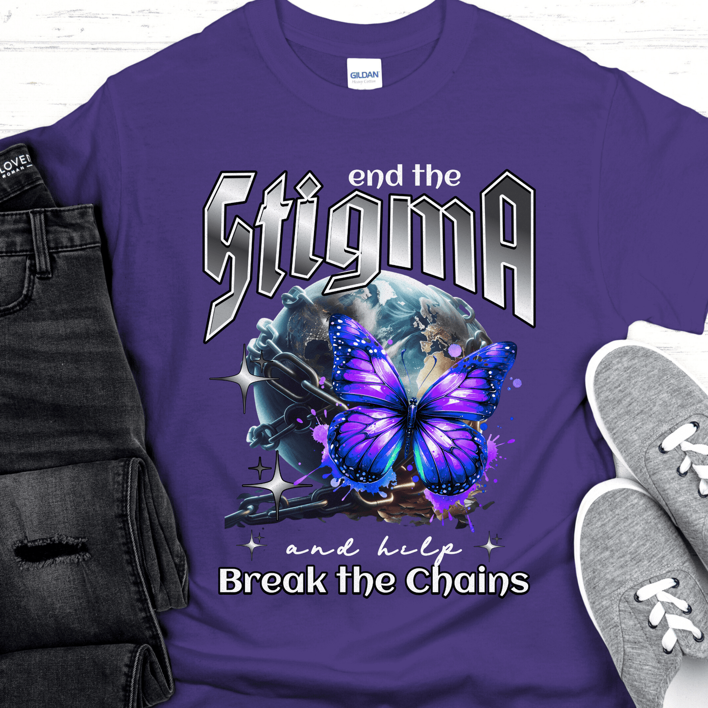 Make a playful statement with the Recovery T-Shirt from Inspiring Sobriety, featuring "End The Stigma Butterfly." This vibrant design combines boldness and hope, encouraging you to break barriers with joy and lighthearted strength. Wear it to celebrate your journey and spread a message of courage with a smile.