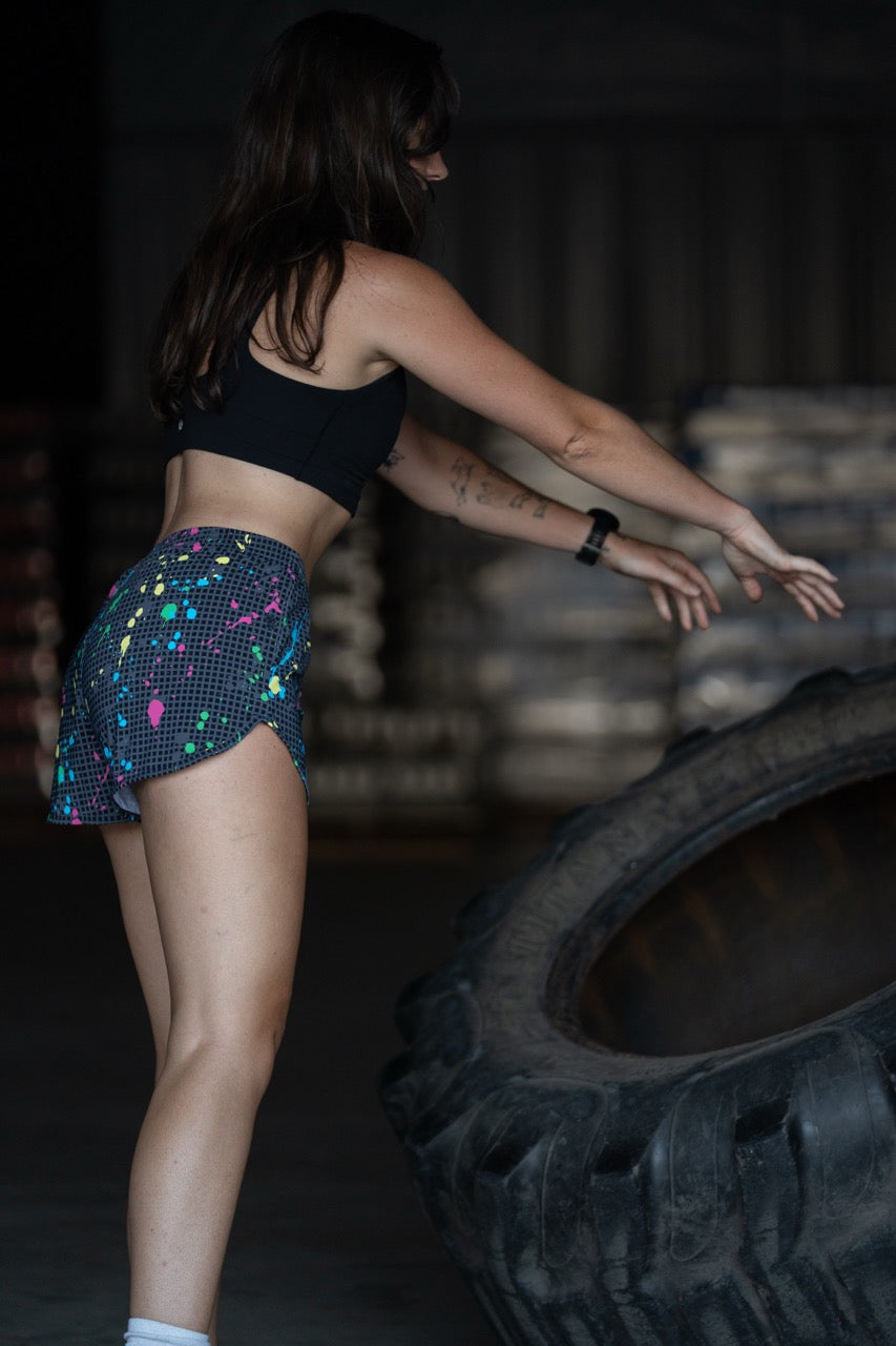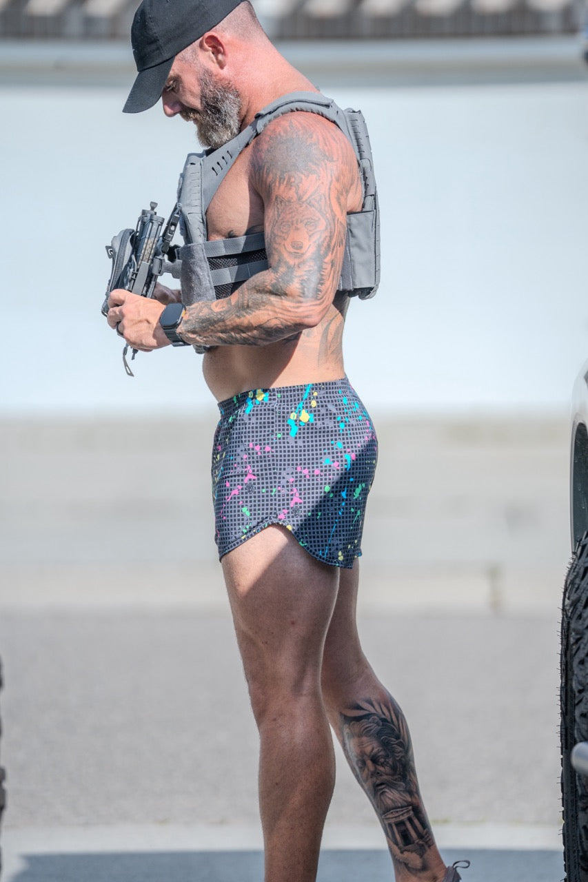 DNC Paint Splatter Ranger Panties combine cutting-edge design with high performance. Made from 4-way stretch polyester fabric, these shorts offer superior flexibility and comfort for any activity. The hidden waistband key pocket keeps your essentials secure and out of sight. Featuring a striking black base with a vibrant multi-color DNC paint splatter pattern, these shorts are perfect for showcasing your quads while making a bold, artistic statement. Ideal for those who demand both style and function.