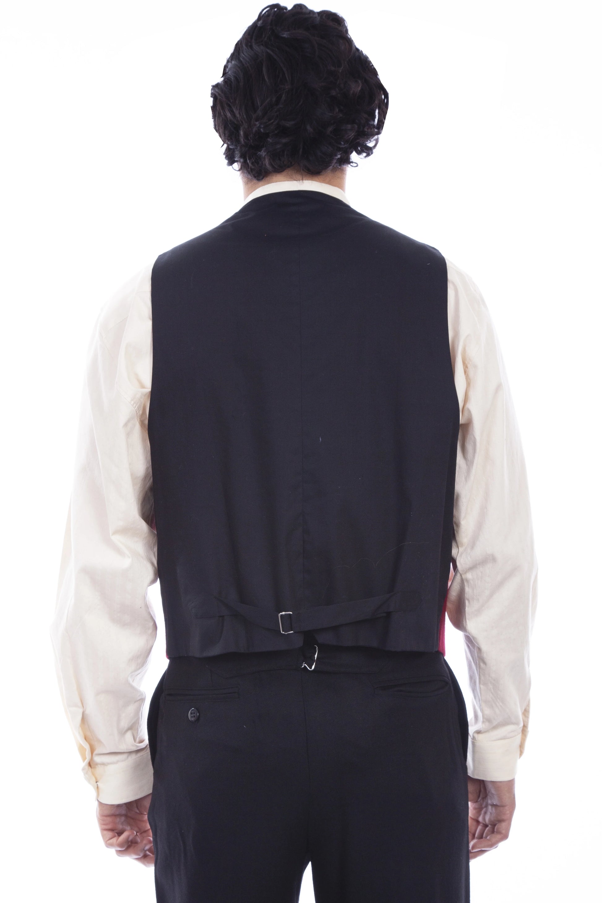 Elevate your wardrobe with this timeless wool blend vest. Crafted from a 50/50 mix of wool and viscose, it offers both comfort and sophistication. Featuring classic notched lapels, a metallic button front, and two lower welt pockets, this vest blends style with practicality.