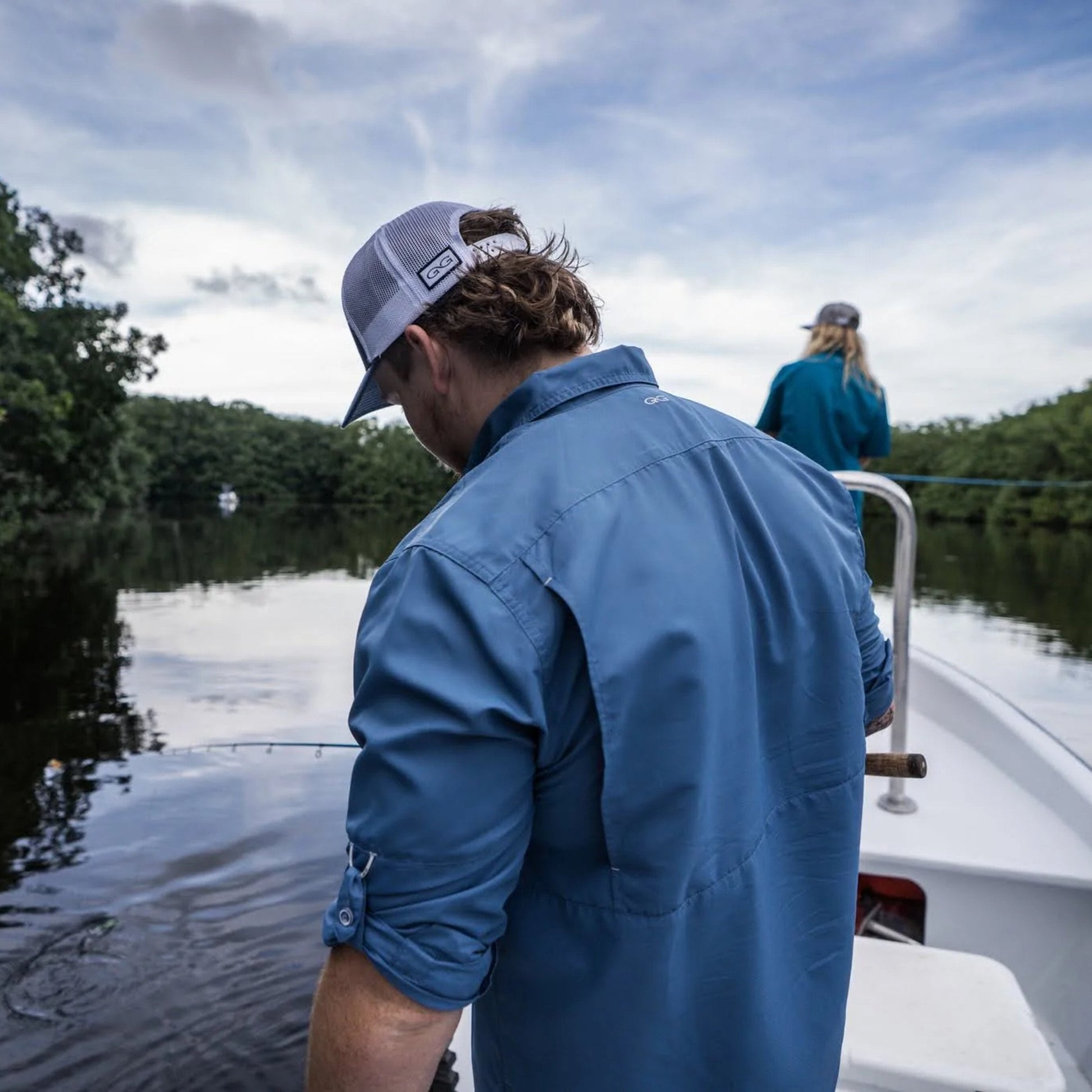 Built for those who thrive in the outdoors, the Original Shirt | Long Sleeve combines comfort and function for your adventures. Made from lightweight microfiber with UPF 50+ sun protection, it shields you from the elements while keeping you cool with mesh-lined vents at the chest and back. Quick-drying and wrinkle-resistant, this shirt is perfect for the unpredictable demands of hunting, fishing, or outdoor exploration. Hidden chest pockets and a bungee loop system add secure storage and versatility, while stain resistance ensures durability in rugged conditions. With a hidden lay-flat collar and tagless design, it offers a polished, no-fuss fit that transitions effortlessly from the field to the lodge.