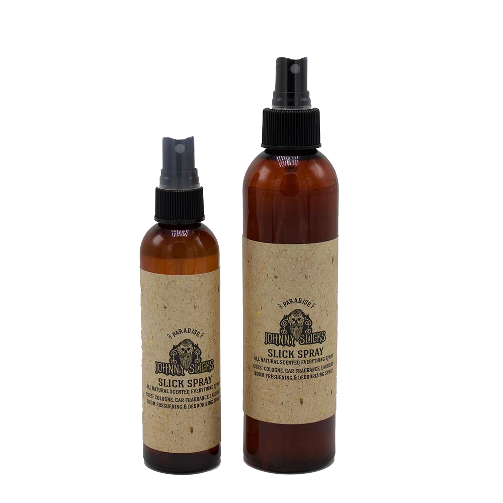 Our organic scented Slick Spray is the perfect way to scent your car, room, or self! In two sizes and a variety of scents, you're guaranteed to love it.