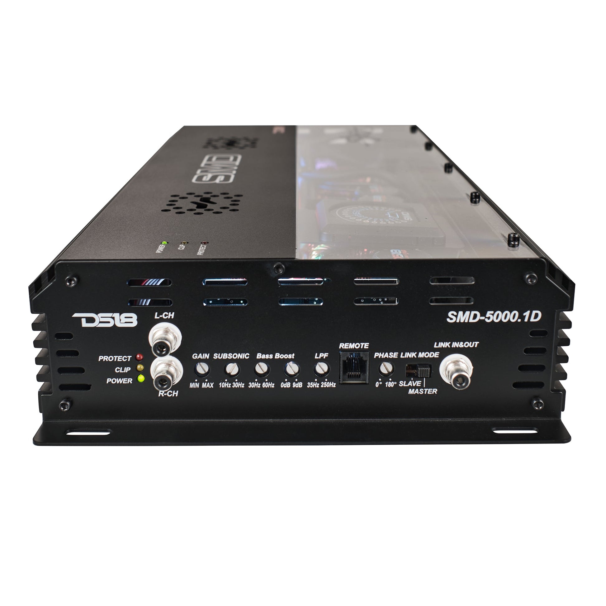 With the SMD-5000.1D, we achieved that and more. What sets the SMD-5000.1D apart is its unique clear half-top design ensuring efficient heat dissipation through a reverse-mounted board and dual cooling fans. It also features an exclusive built-in SMD VM-1 digital/analog-style LED voltmeter that monitors power draw in real-time. Customizable RGB lighting adds another layer of personalization, allowing you to match your vehicle’s interior or create dynamic light displays.