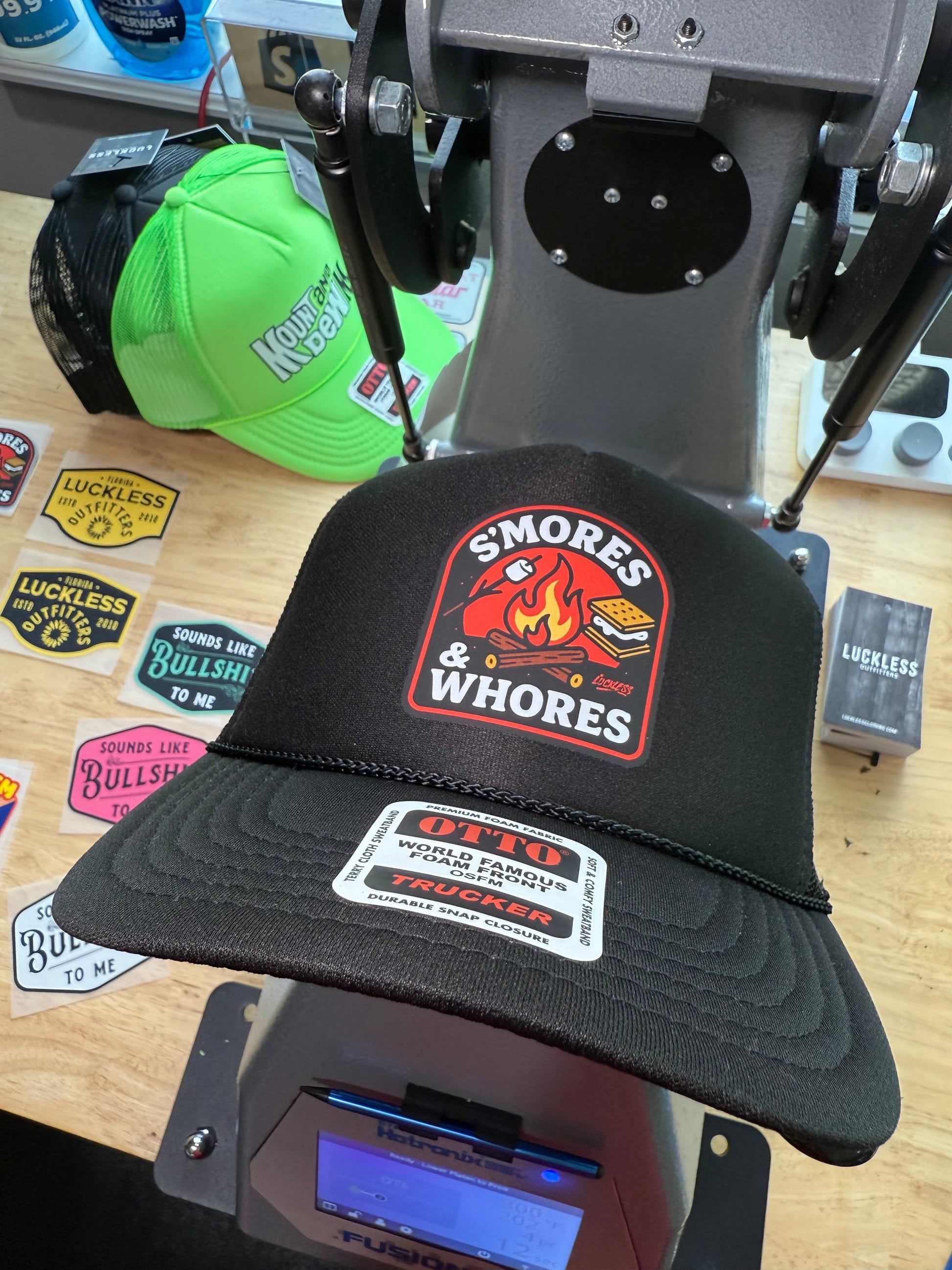 Take your campfire game to the next level with our unapologetically wild "S'mores Hat" snapback/trucker hat. Whether you're lighting up a bonfire or just turning heads at the tailgate, this hat says you're here for good vibes and bad decisions.