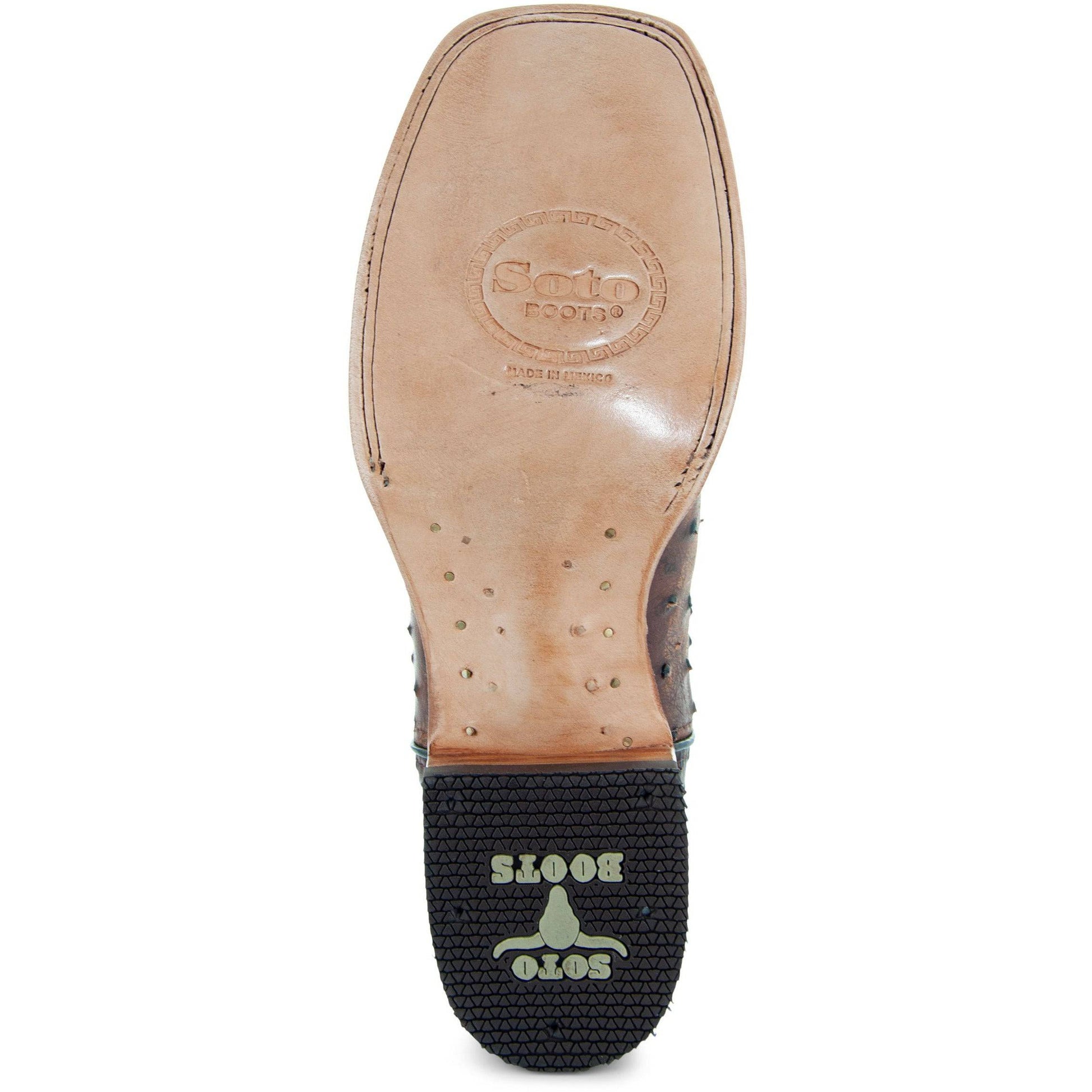 Out of the Wild Mens Cognac Ostrich Print Boots by Soto Boots H50031