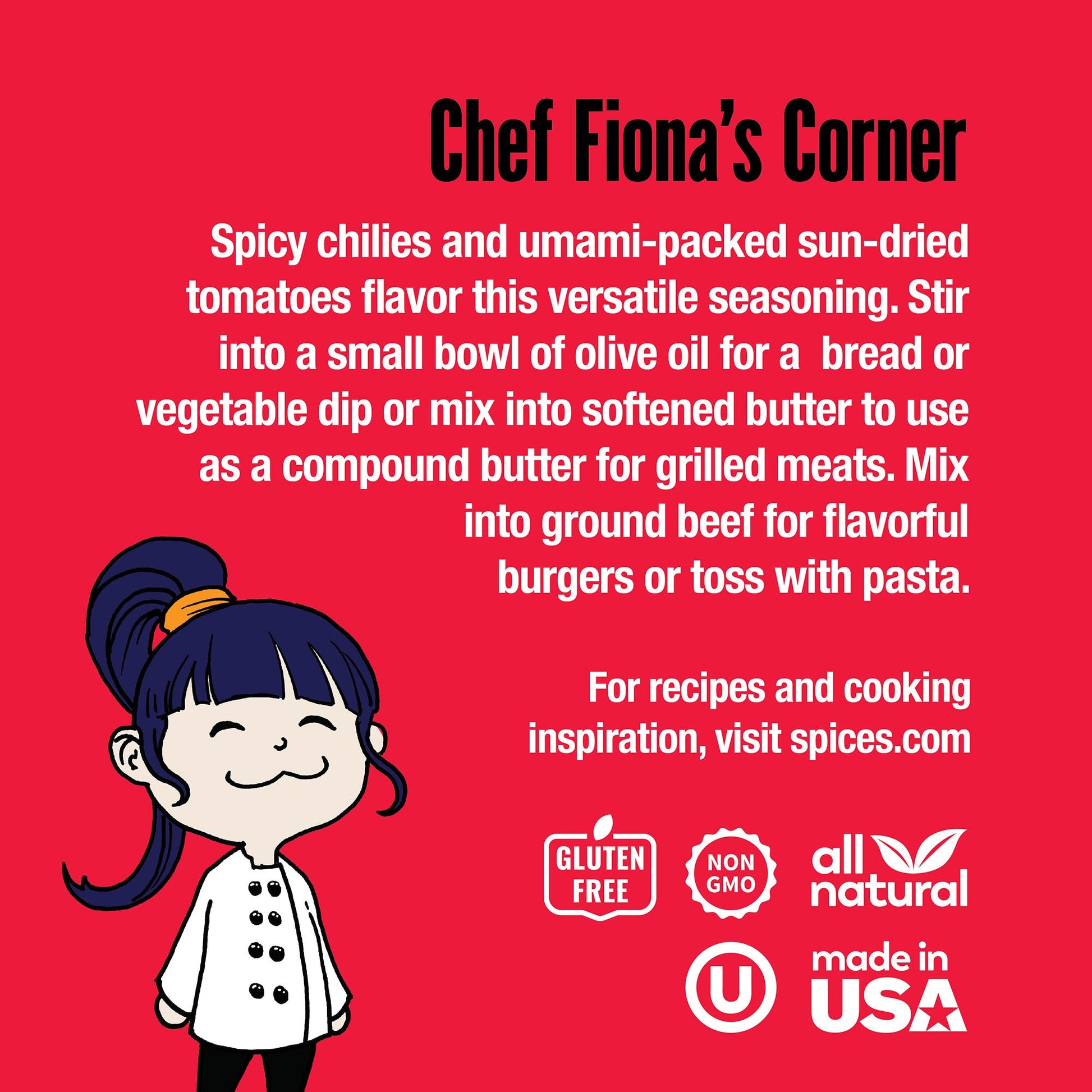 SPICY SUN-DRIED TOMATO SEASONING: An Italian seasoning that packs heat and umami flavor, this all-purpose blend is the perfect pasta sauce and pizza seasoning. A pantry staple, it makes a great anytime gift for gourmet chefs and beginners alike.