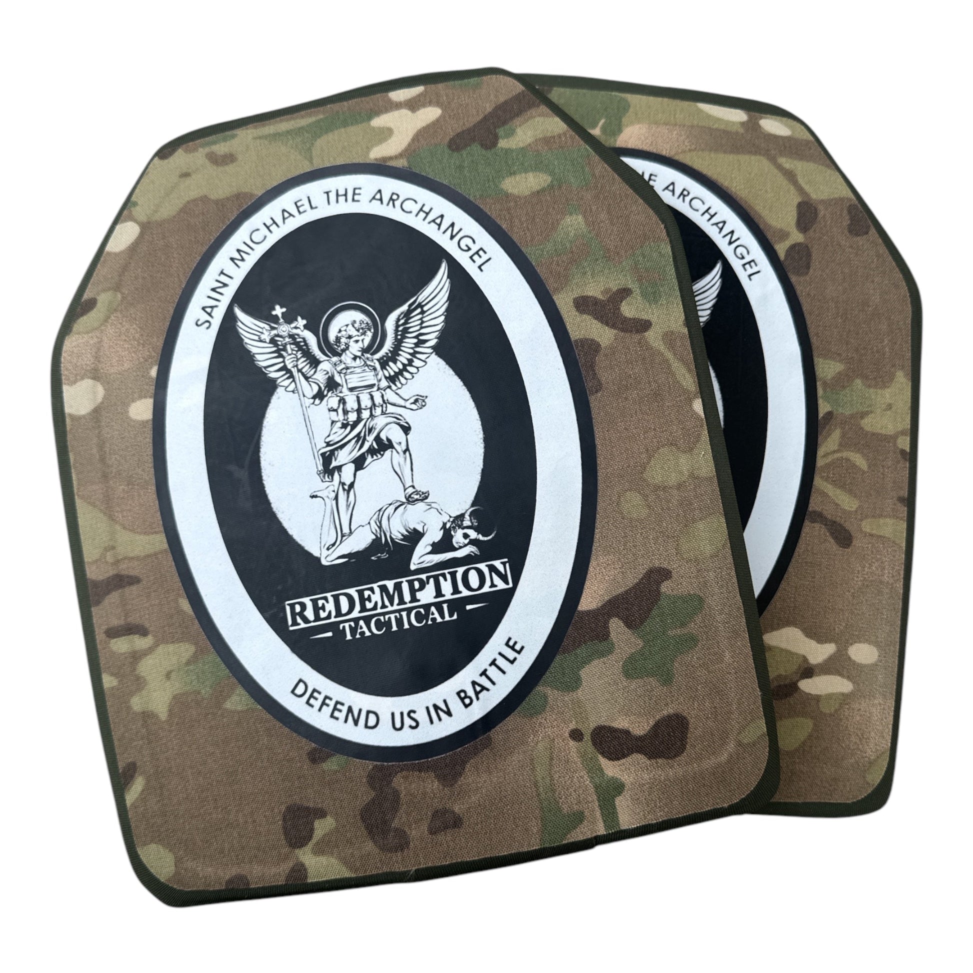 St Michael Archangel Plates Pair of 10x12 Level IV Ceramic PE Plates Ballistic FRONT AND BACK (SIZE SMALL to LARGE) Curved with Shooters Cut
