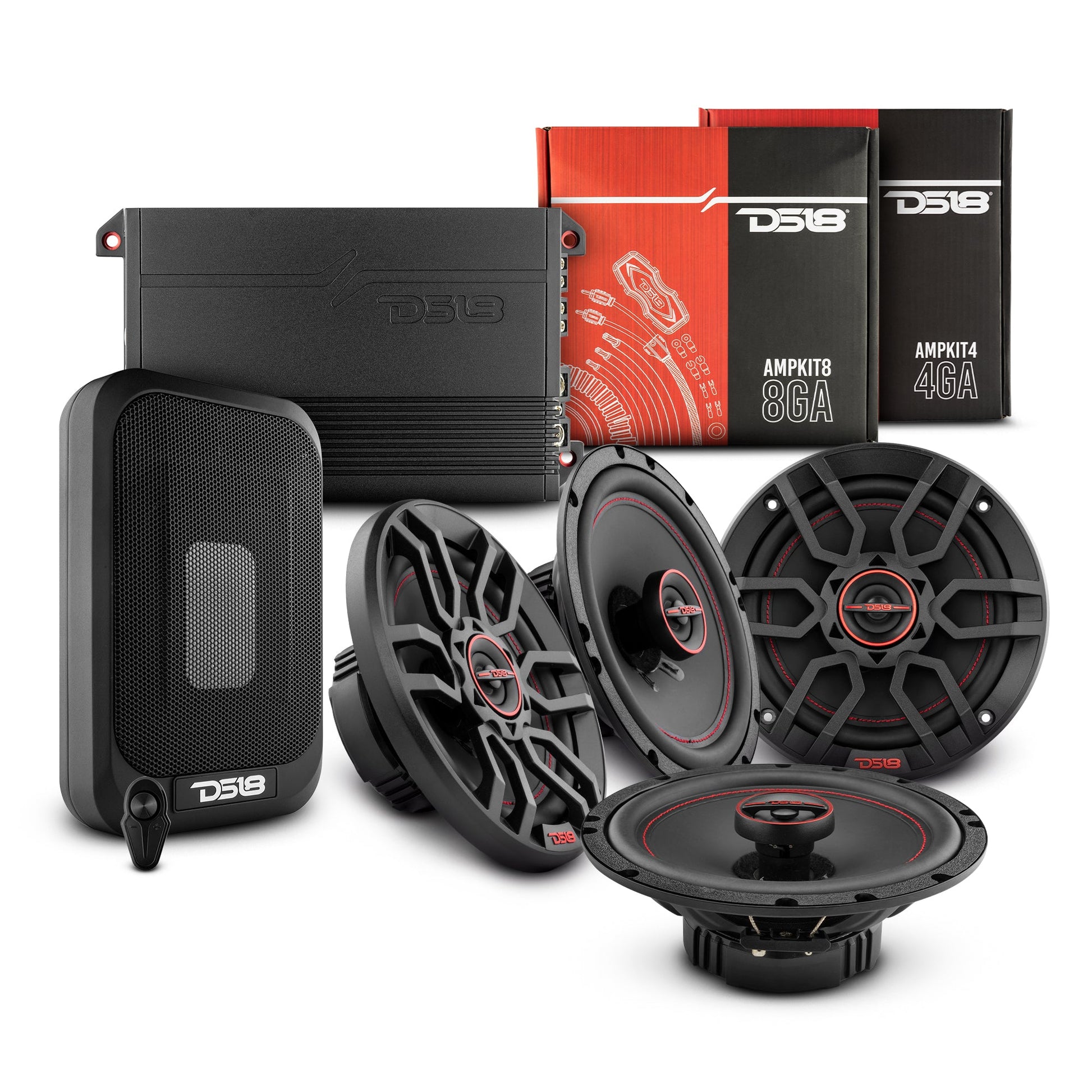 Achieve seamless installation with DS18’s AMPKIT8 (8-GA CCA) and AMPKIT4 (4-GA CCA) Installation Kits. These kits include high-quality true gauge wire, heavy-duty hardware, and fuses for smooth and secure setup.