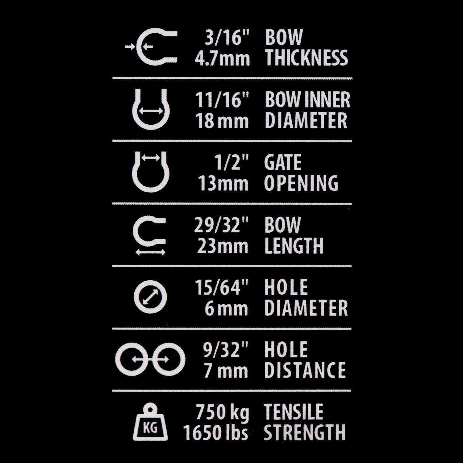 - CAN BE USED IN AN EMERGENCY – The TITAN Bow Shackles have a large gate opening of 1/2" (13mm) which makes attaching to the adjustment clasp, or other equipment very easy. In addition, this clasp can hold up to 1,650 lbs. in an emergency.