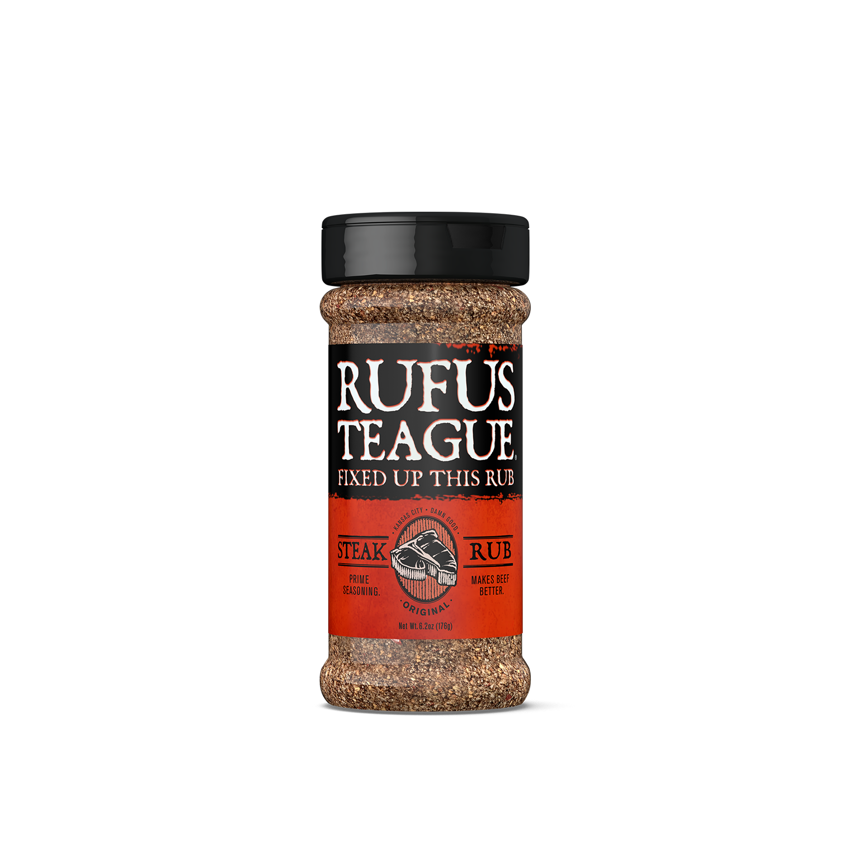 Steak is special. So stay away from those silly seasonings and cover your meat in Rufus Teague Steak Rub. It goes beyond steakhouse flavor by adding a bit of coffee to the course salt and spices to deliver mouthwatering meat that is unmistakably Rufus.