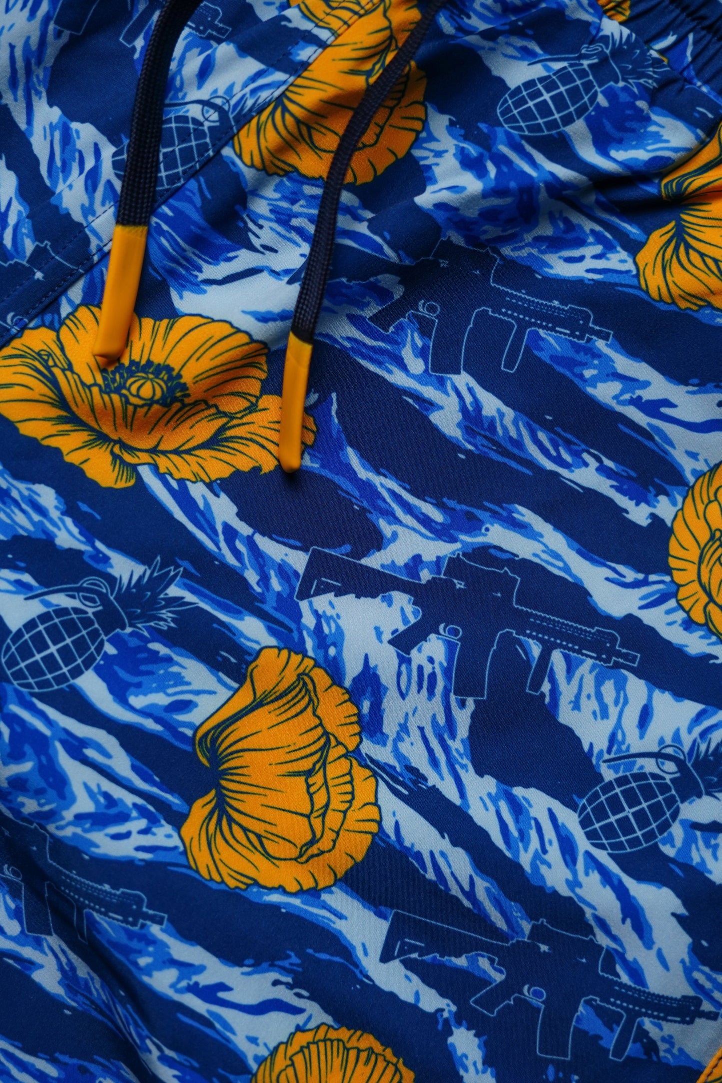 Built for surf, sand, and whatever you wreck next, the Tiger Stripe Blue swim trunks bring sharp style and unrelenting attitude—no nonsense included. Crafted for brutal pool days, intense range sessions, and every sun-scorched mission in between, these boardshorts grip all-day comfort with a rugged, take-no-prisoners vibe. Engineered for high performance, they switch seamlessly from swimwear to street-ready beach shorts when things go off-script. Made from lightweight, lightning-fast drying polyester/spandex fabric, they feature a 5.5-inch inseam, mesh lining with quick-drain pockets, two front and two back pockets, a covert waistband stash spot, and a flexible elastic waistband built to move with you.