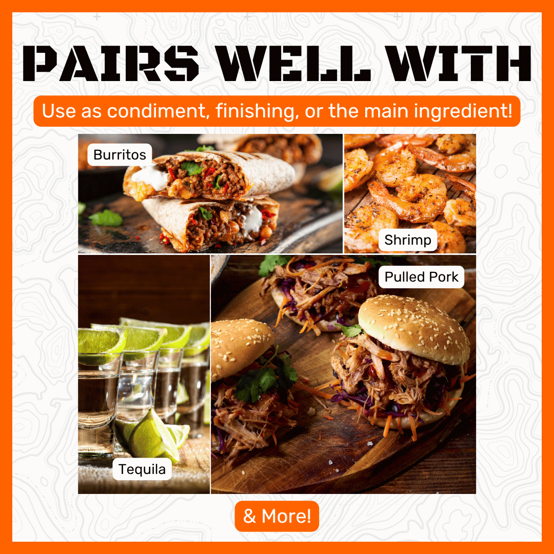 Like biting into a succulent, spicy mango. Packed full of juicy mangos and fiery habaneros that add a blissful sweet heat balance to any meal. It greets you with a 'how-do-you-do' then kicks you in the ass with a delayed heatwave.