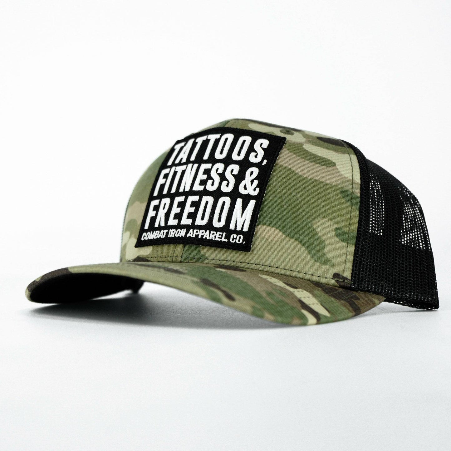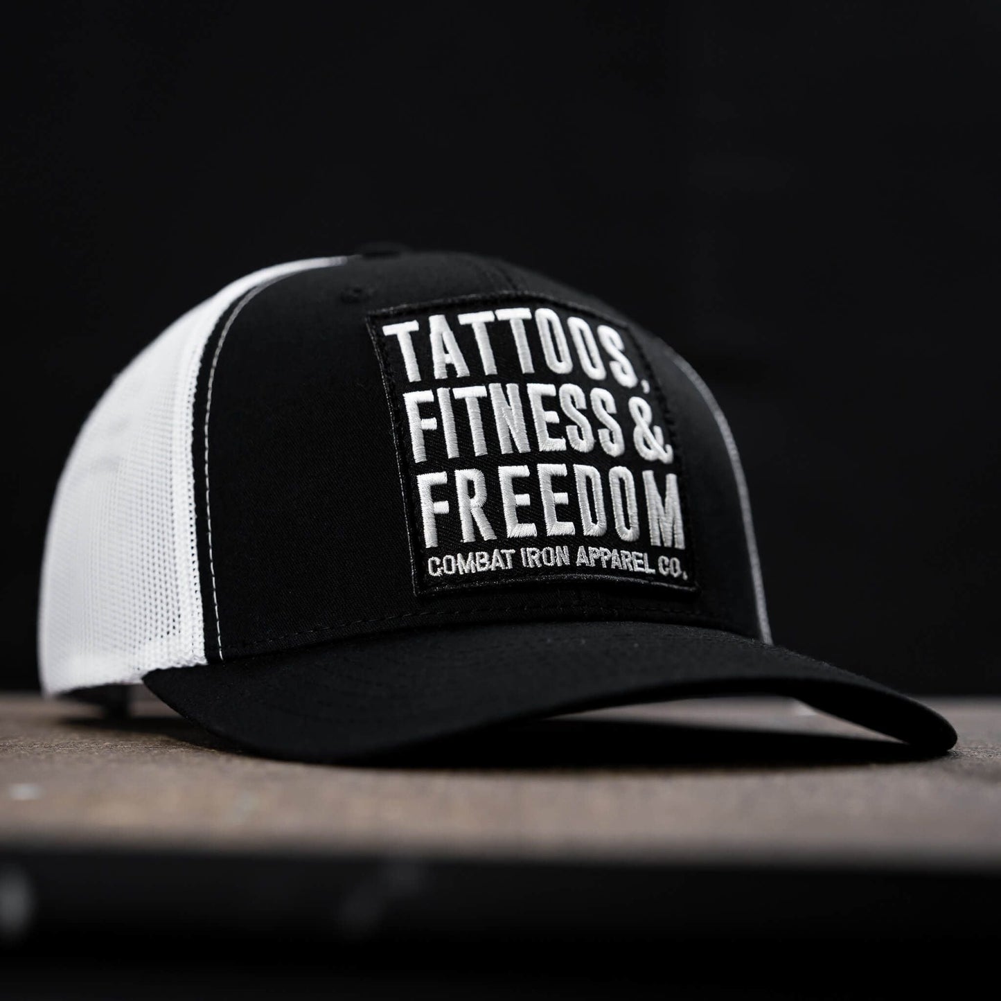 Tattoos, Fitness, & Freedom Black Patch Mid-Profile Mesh Snapback Hat