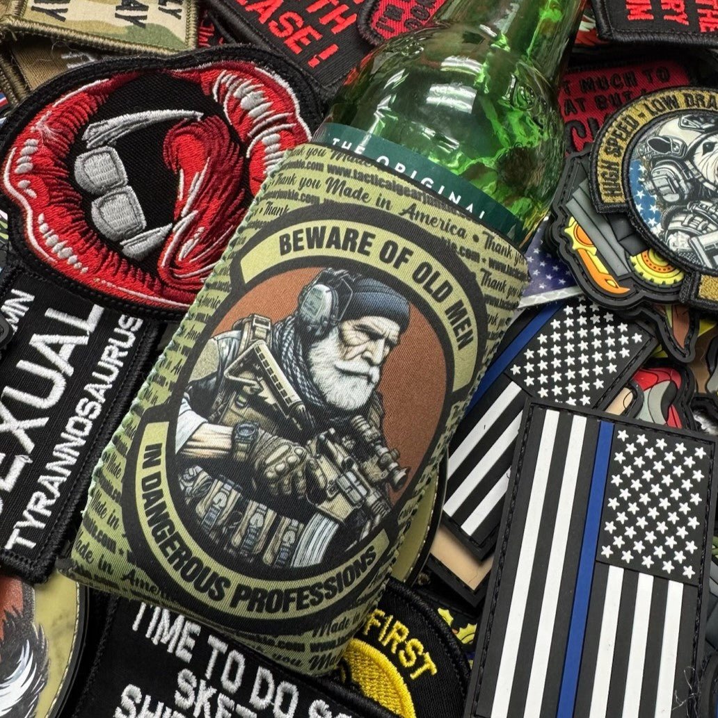 Some of our most popular patch designs, have now been turned into tacticoolers. Neoprene tacticoolers are insulated sleeves made from a soft, flexible synthetic rubber material designed to keep beverages cold and hands dry. Pick yours up today to make your beverage extra flashy.