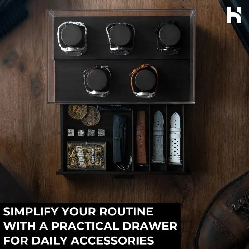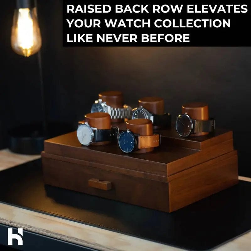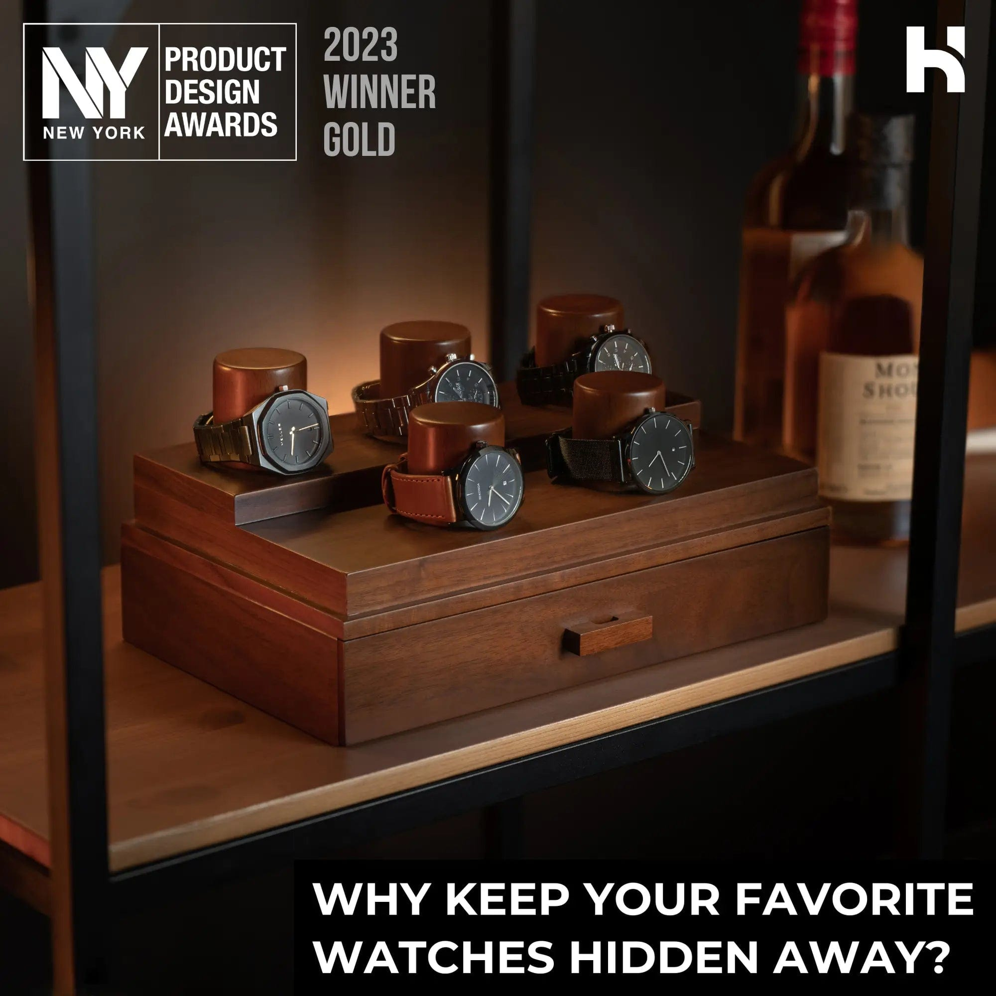 Do you have an growing watch collection you would like to both store and display? Look no further than The Curator, a watch box for men with an innovative two-tier platform that has enough space for 5 of your most precious watches.