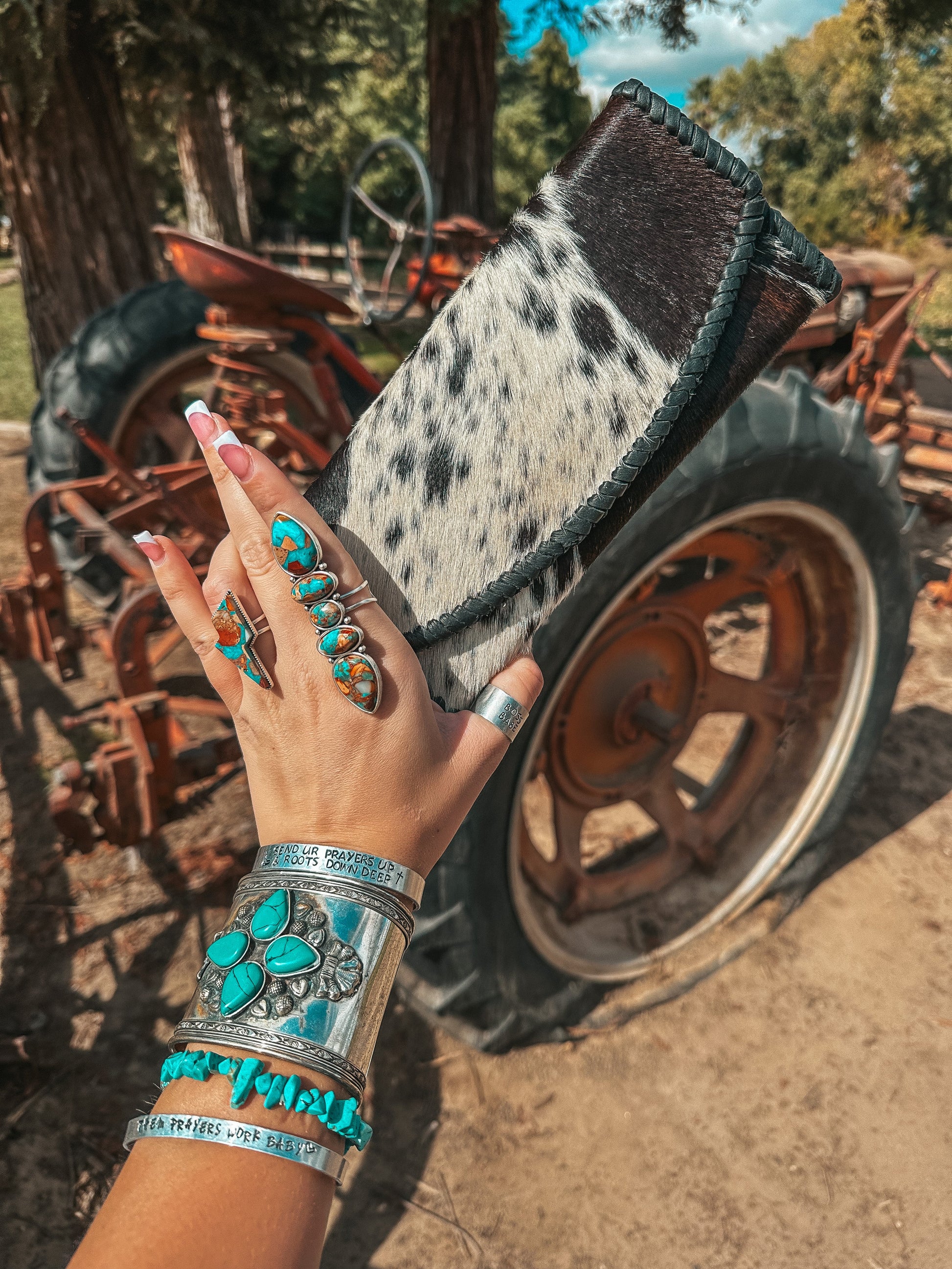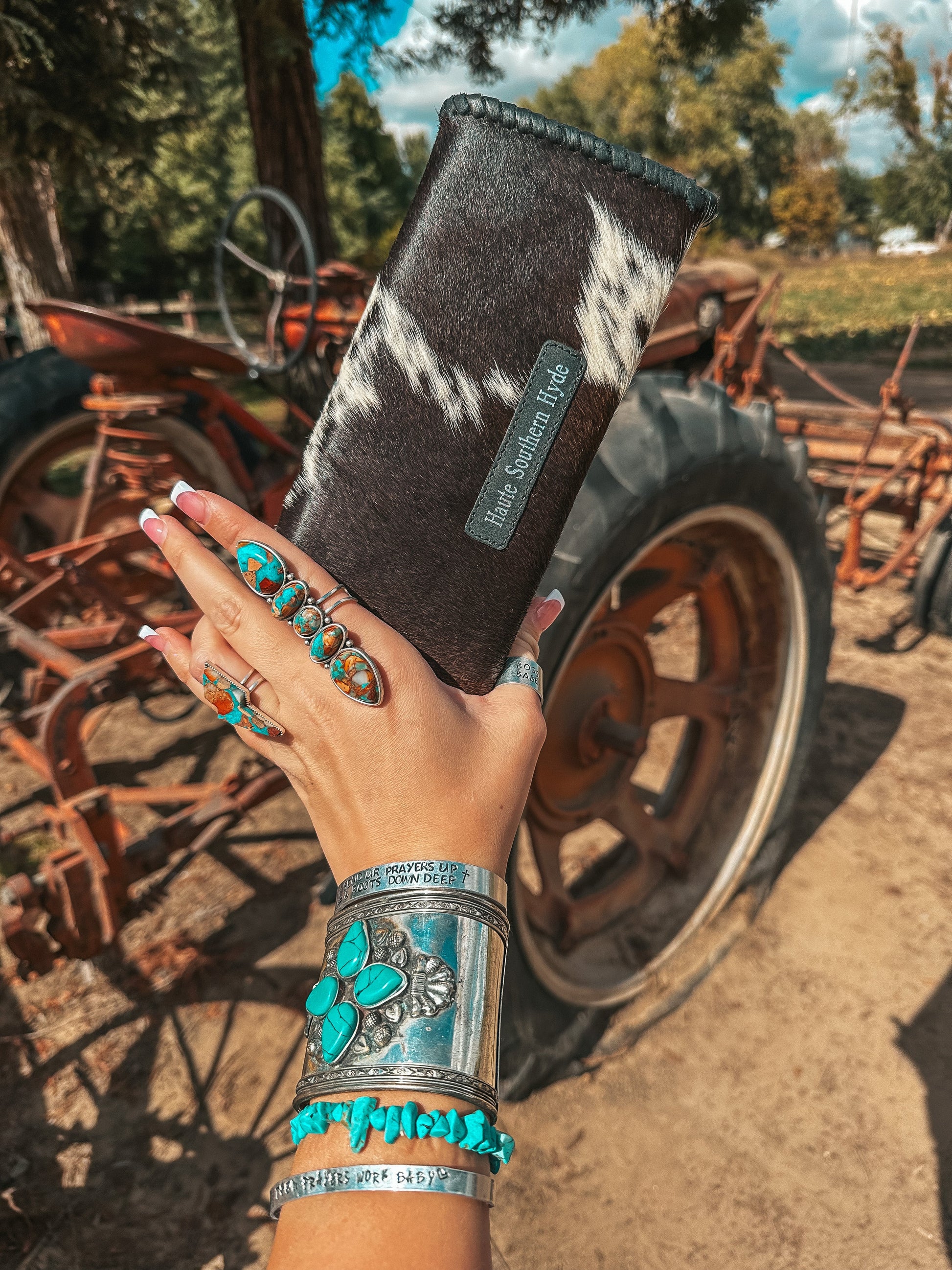 Please note every wallet will be one of a kind as each is made with a brand new unique cowhide piece. You will not receive the wallet in the photo but will receive a brand new wallet made with a brand new cowhide piece.