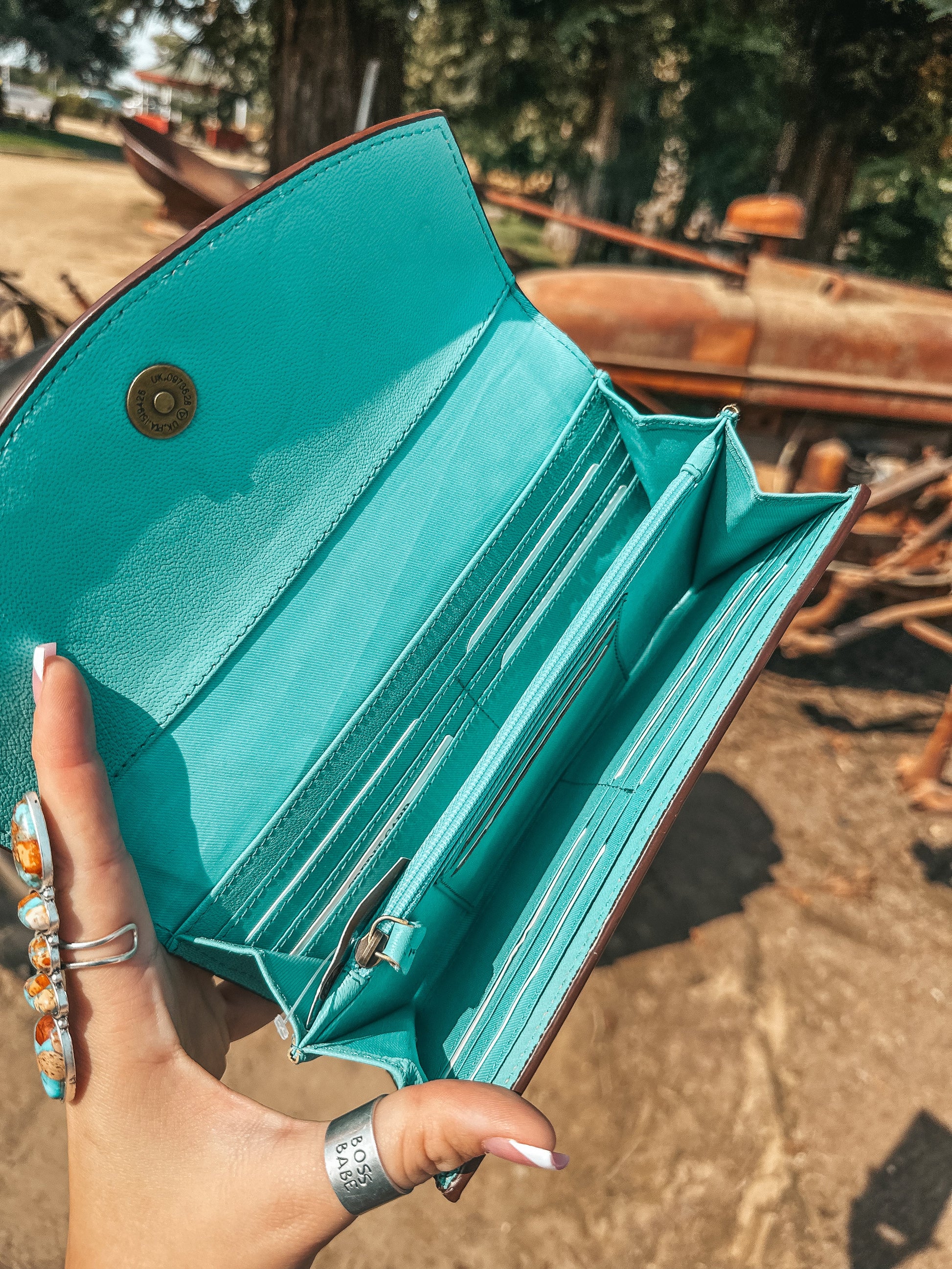 The interior boasts 13 card holder slots with one of them being for your ID card. Don’t go without your change holder either, we got one centrally located for you. When you’re done, snap her and keep all your valuables safe. Please note each wallet will be made with a one of a kind cowhide piece.