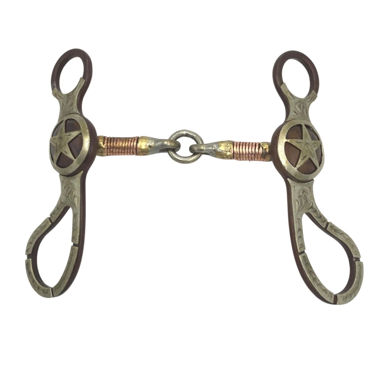 The Old 106 is a updated version of the Crockett and Kelly bit number 106. First introduced over a hundred years ago this new and improved version is even better! 6" antique brown cheeks with a 5" copper wire wrapped lifesaver snaffle mouth. The mouth has ball and hinge cheek attachment for smooth non-pinch action. A great transition bit or tune up bit for older horses!