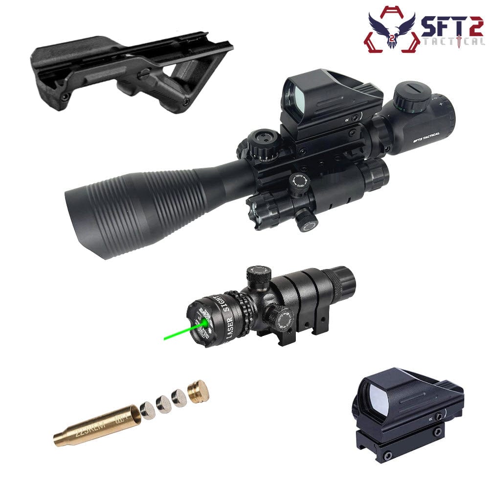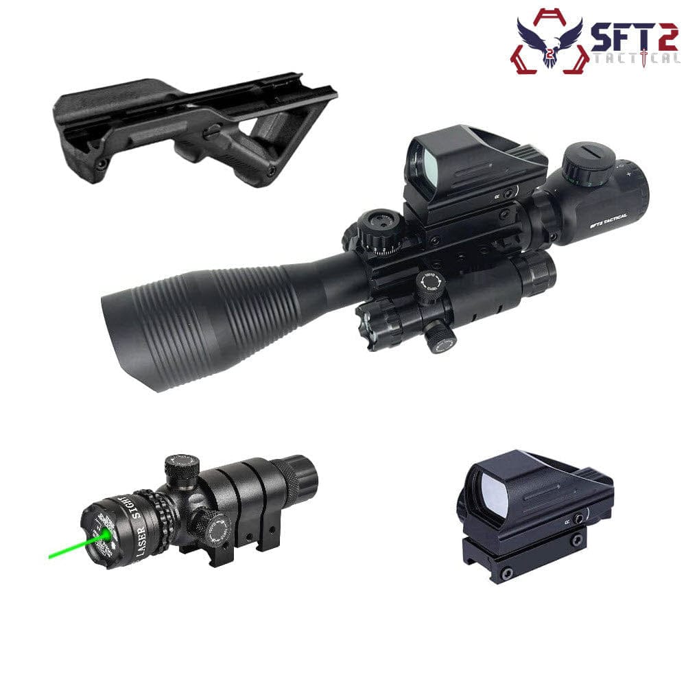 SFT2 ModScope: Available in 4-12x or 4-16x configurations, each scope comes equipped with a holographic red dot mounted on top for seamless long-to-short range transitions. Nitrogen-purged, built like a tank, crystal-clear optics, and excellent light transmission make this scope ready for any environment. Pair it with a selectable red or green laser for a reliable secondary aiming option.