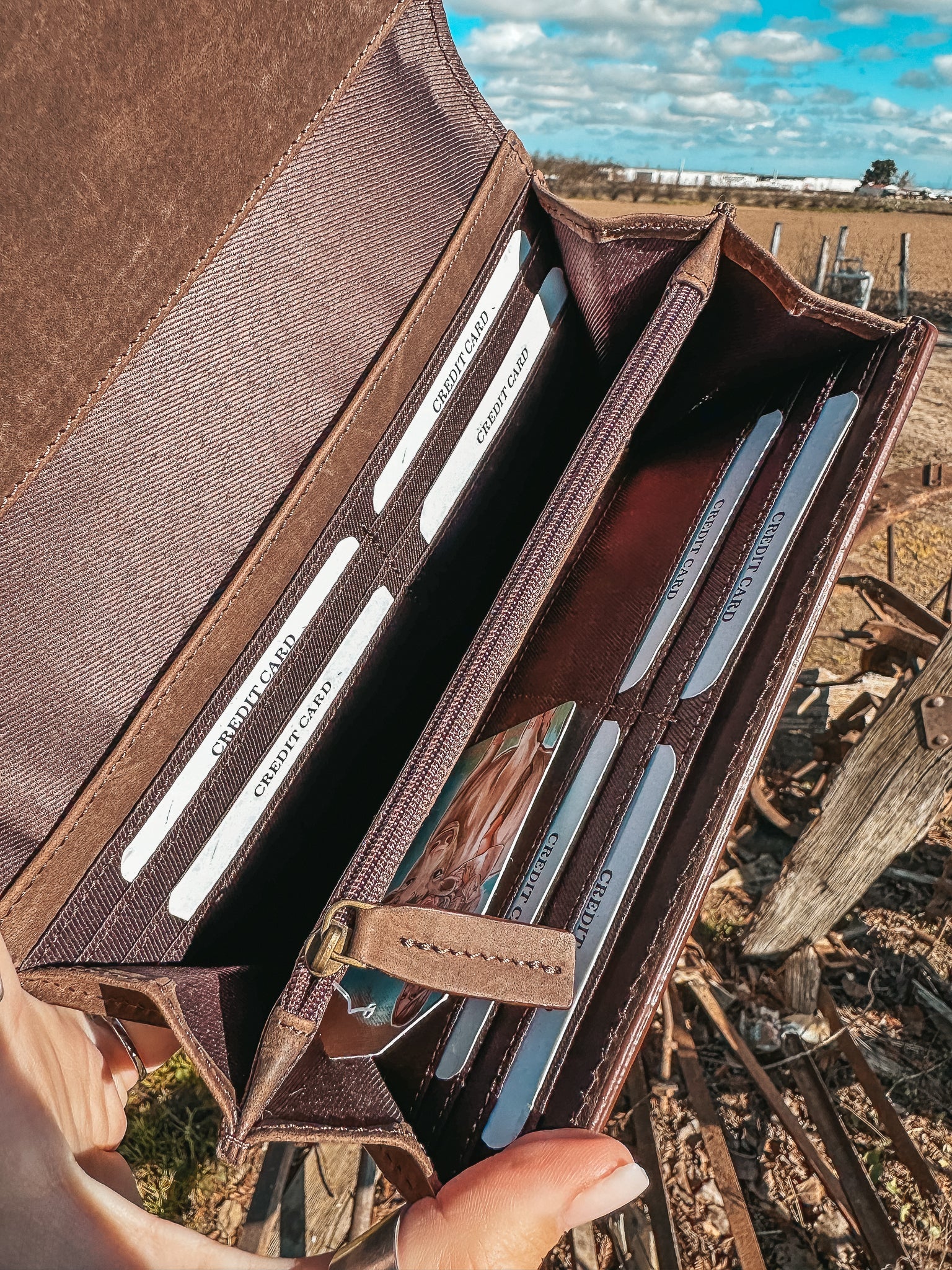 The Willa Mae boasts a whopping 13 credit card slots, including one dedicated to your ID, located on the change zipper.