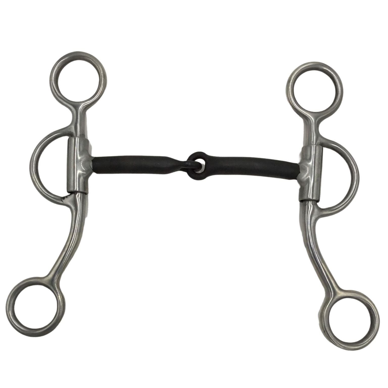 One of the best transition bits available. 6 1/2" stainless steel 4-rein cheeks. 5" thick, sweet iron mouth, inlaid with copper and a "No Pinch" long barrel where mouth attaches to cheek.