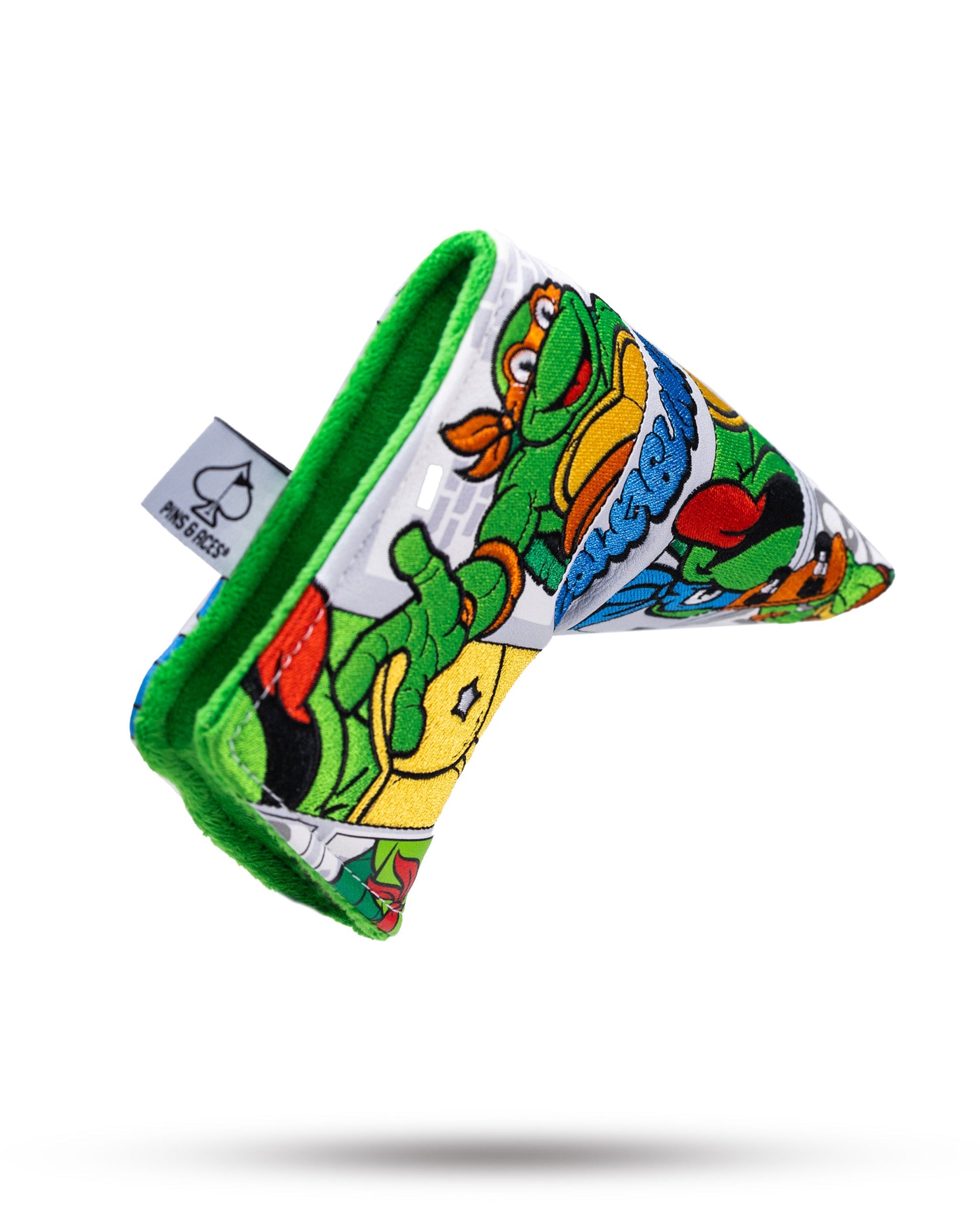 Unleash your inner hero on the golf course with the Pins & Aces x Teenage Mutant Ninja Turtles Collection 2.0 Blade Head Cover. Turn heads on the course with the classic comic strip design that pays homage to the beloved TMNT characters, bringing a playful and nostalgic vibe to your golf gear. Crafted with precision and durability, the head cover ensures your driver stays protected in style. The vibrant colors and iconic comic strip graphics make this limited-edition release a must-have for golfers who crave a unique blend of pop culture and performance. Transform your golf bag into a conversation starter and let the Teenage Mutant Ninja Turtles Collection drive your game to new heights. Cowabunga, golfers – protect your putter with flair!