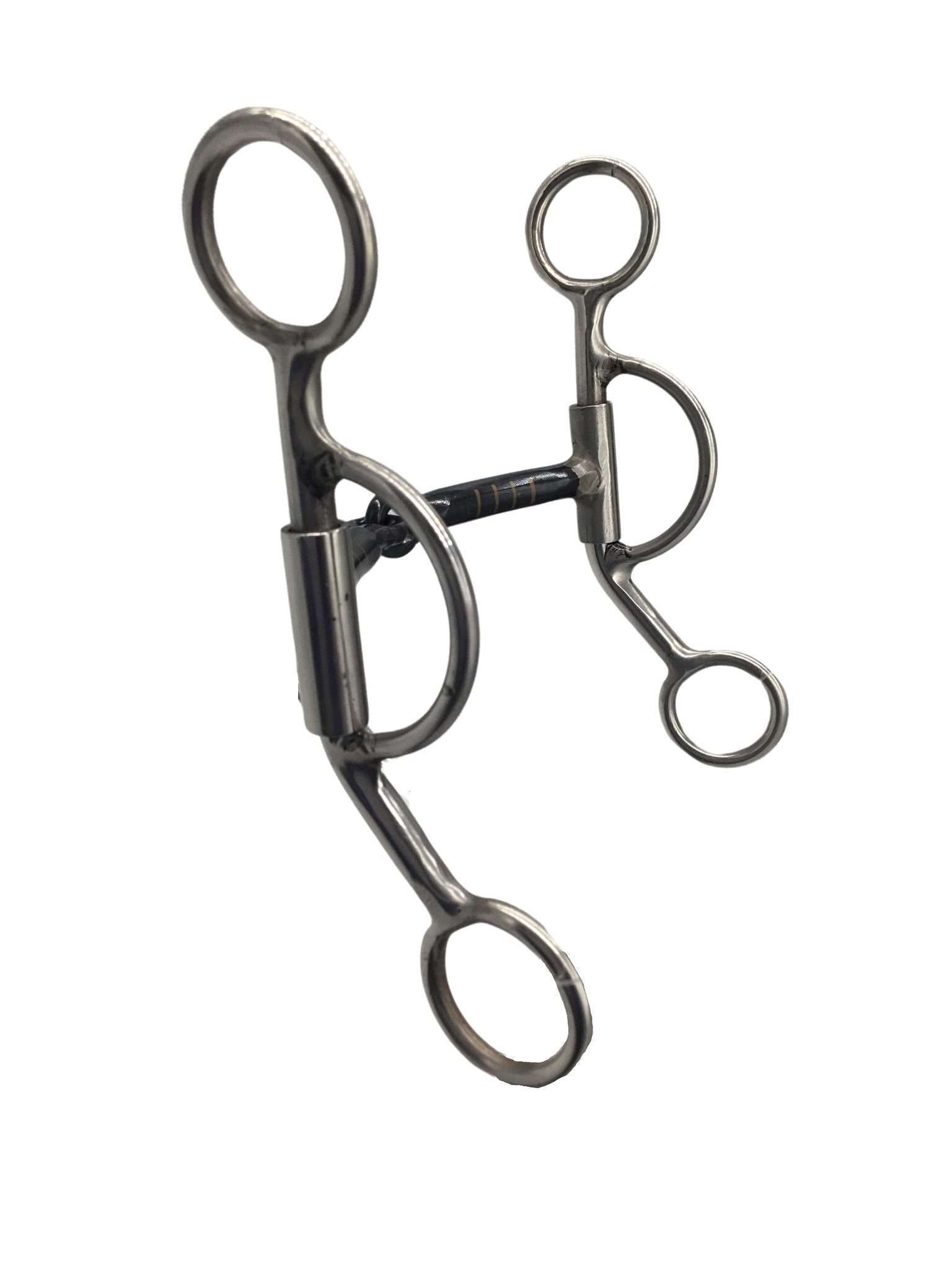 This bit has it all! 6 1/2" stainless-steel 4 rein cheeks. Sweet iron mouth inlaid with copper and long barrel. "No Pinch" where mouth attaches to cheek.