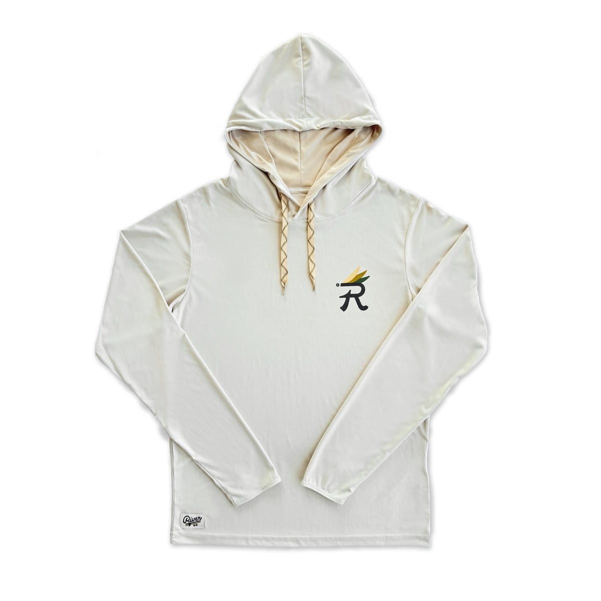 Lightweight, quick-dry crossover hoodie offering breathability and UPF 50+ sun protection. This is perfect to wear on your next fly-fishing adventure or hike through the woods. Our custom-designed UPF hoodie was made for those who love being outdoors. The material helps block UV rays while casting and drinking that cold beer for a few hours. This variant is featured in buttery-soft, cream-ale white.