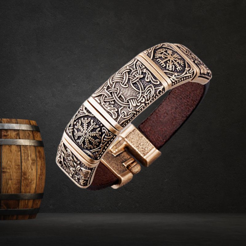 The design of this bracelet is very closely modeled after actual Viking artwork. Hugin and Munin were the ravens of Odin, serving as scouts and his eyes throughout the world. Because of this, Ravens have always been very popular in Viking art, and are revered not only for their connection to Odin but also for their intelligence and cunning. The Vegvisir, also known as the "runic compass" made of eight Viking rune staves, it's a symbol of protection and guidance. The word vegvisir means "Wayfinder" and "signpost" in the Icelandic language.