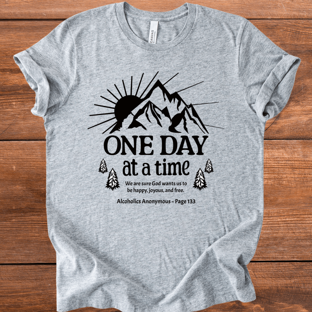 Make a fearless statement with the Vintage Recovery T-Shirt from Inspiring Sobriety, boldly declaring "One Day at a Time." This daring message celebrates the relentless courage to face each moment head-on and own your journey to freedom. Wear it as a symbol of unstoppable strength and unwavering commitment.