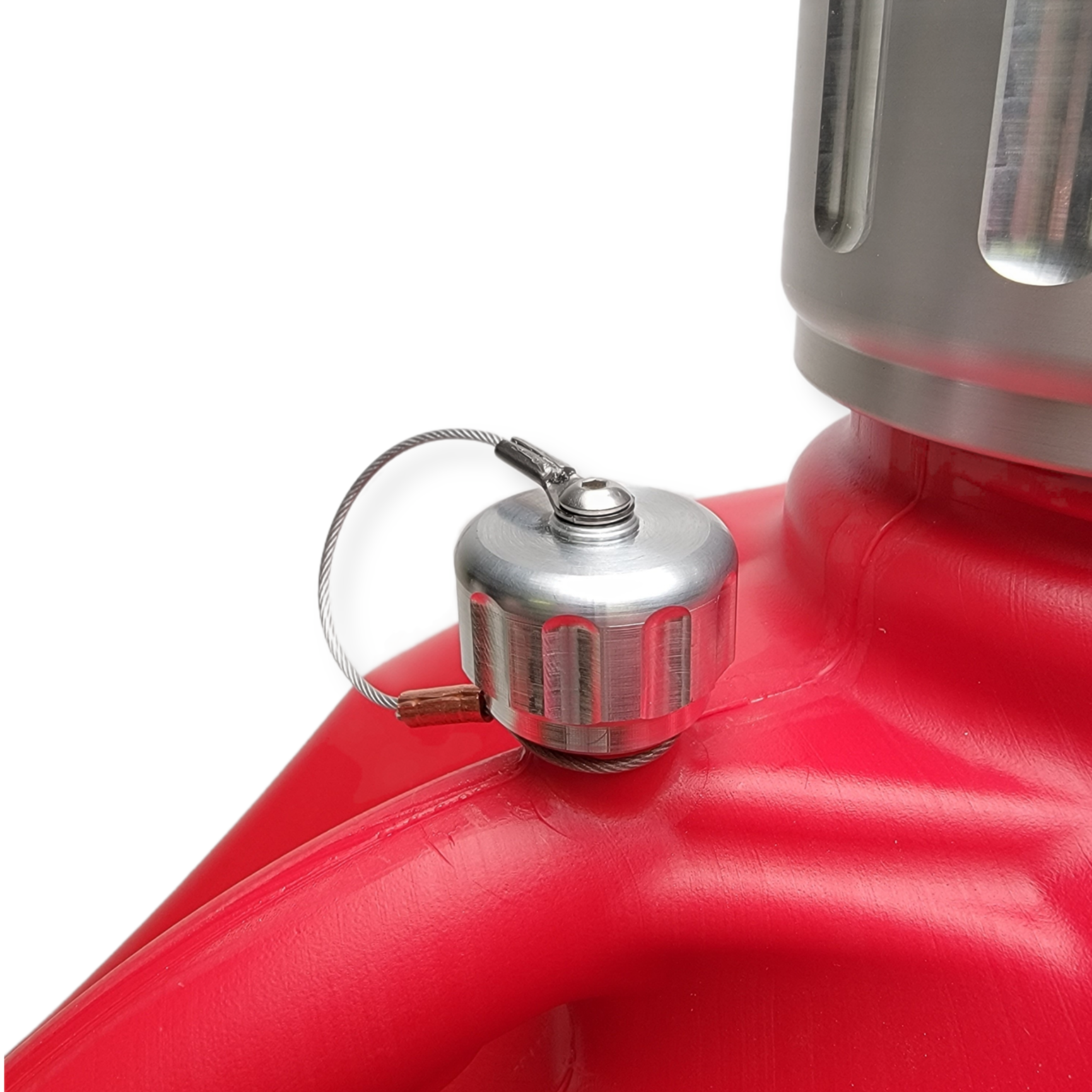 1 qty Billet Aluminum VP Vent Cap, a Viton seal, and a Stainless Steel Tether.