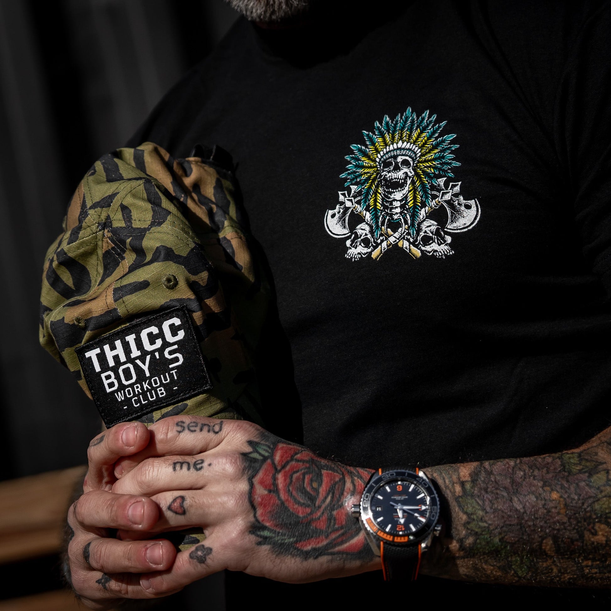 Custom design printed in house to ensure comfort without compromise. Breathable, pre-shrunk, and ready to take a beating, it’s perfect whether you’re busting your ass in the gym or kicking back with a cold one. Easy to wash, no box cut, no fluff, no BS—just a well-designed tee that feels good and fits even better.