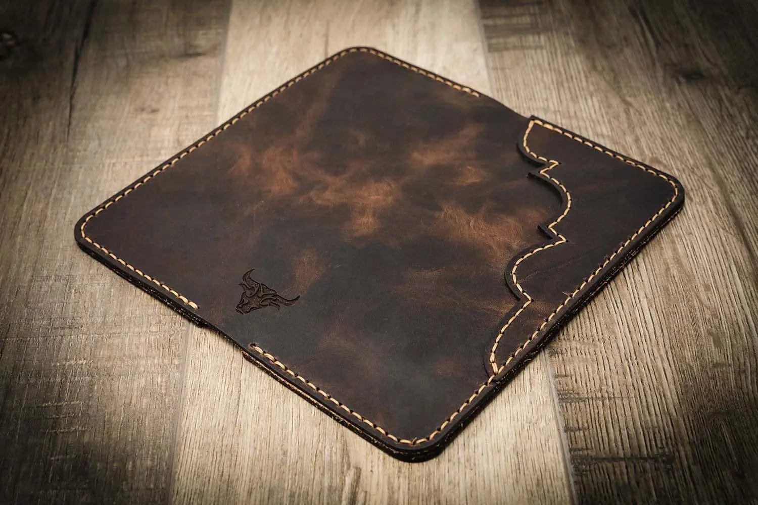 We have added a Western Long Wallet to our lineup of personalized mens leather wallets. This long wallet for men is a tall bifold wallet built in a traditional style, that can hold all of your credit cards, debit cards, and even a checkbook. We take pride in our handmade leather wallets and personalized gifts for men. This leather long wallet will provide you with an every day carry as big as Texas!