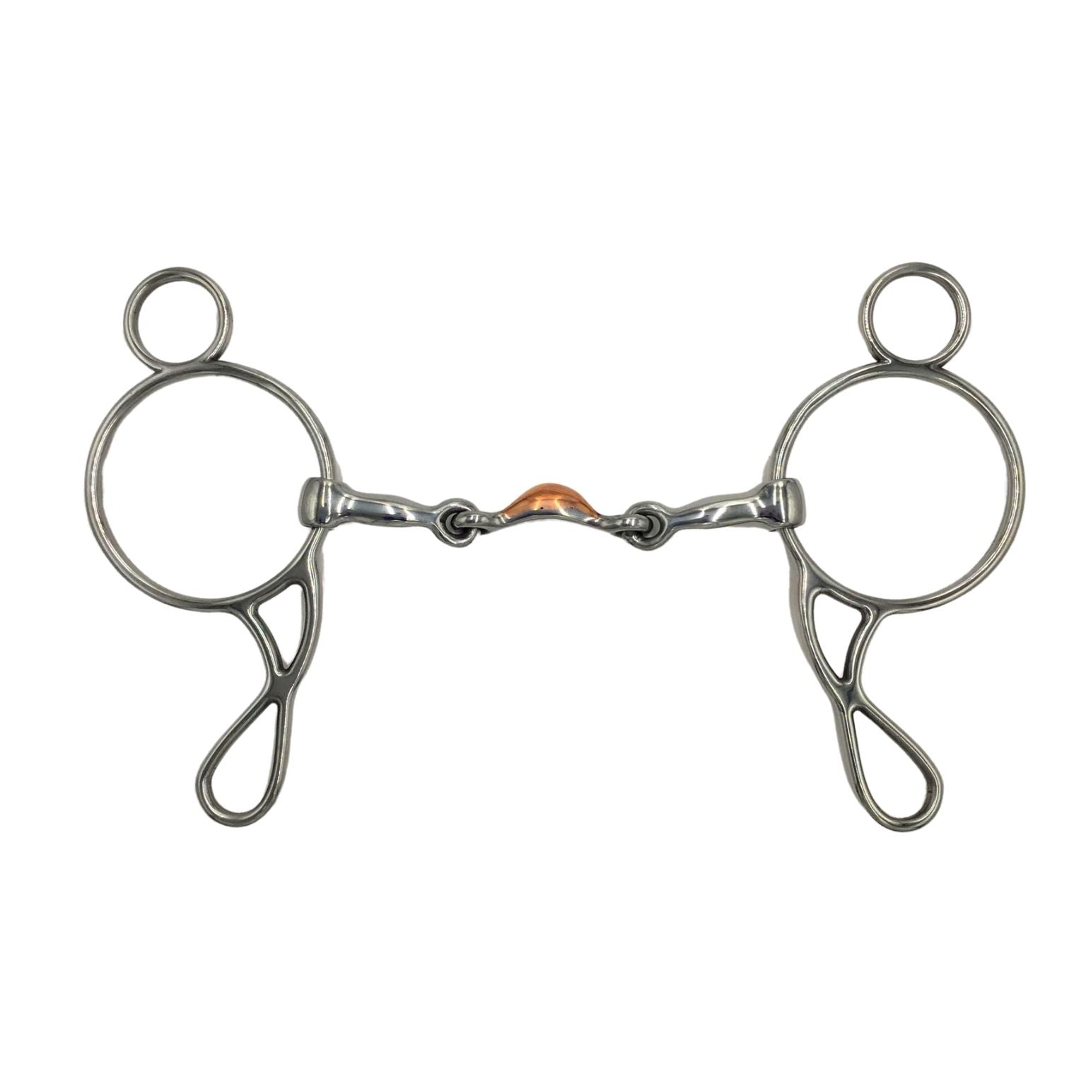 7 1/2" stainless steel cheeks. 5" 3-Piece stainless steel mouth with center port.