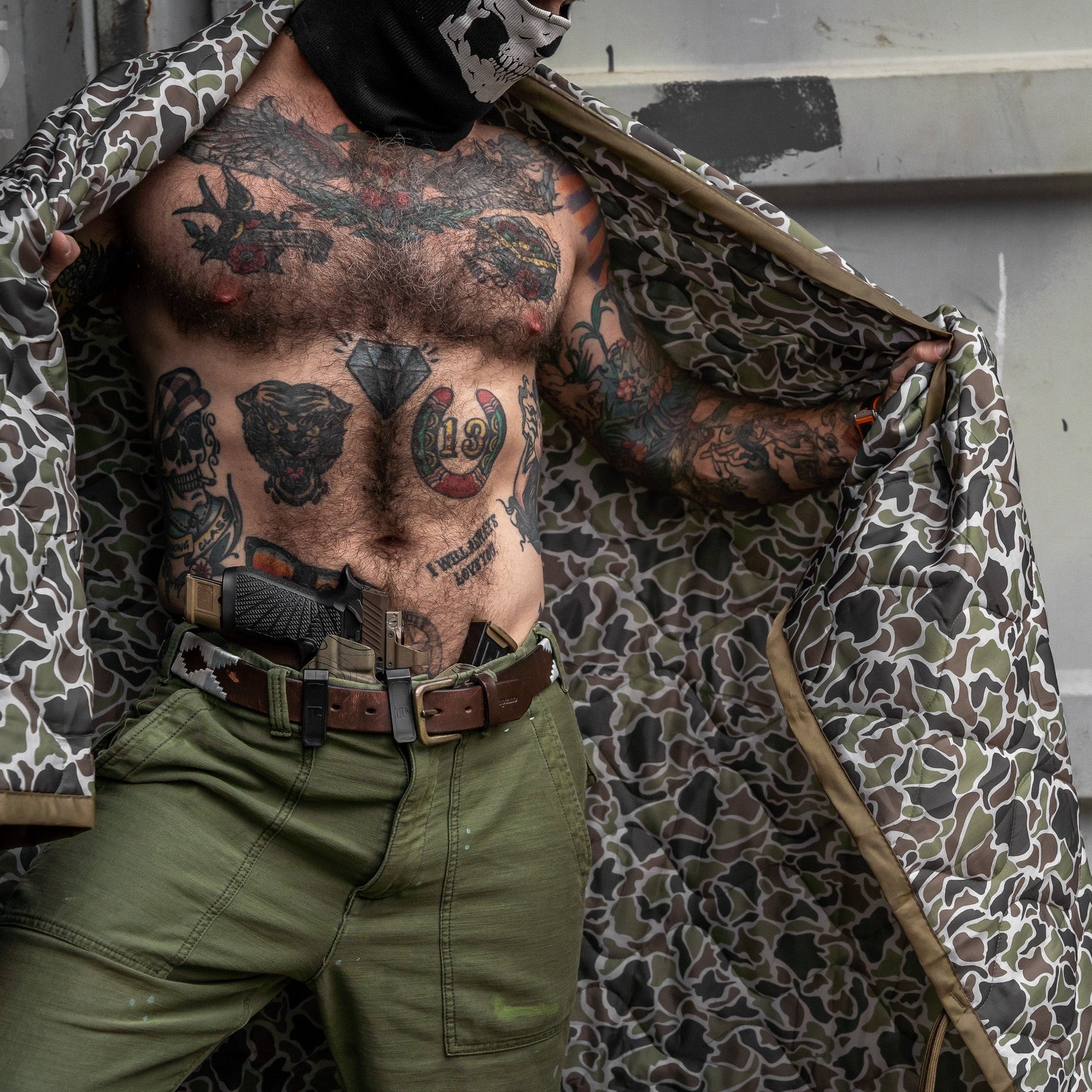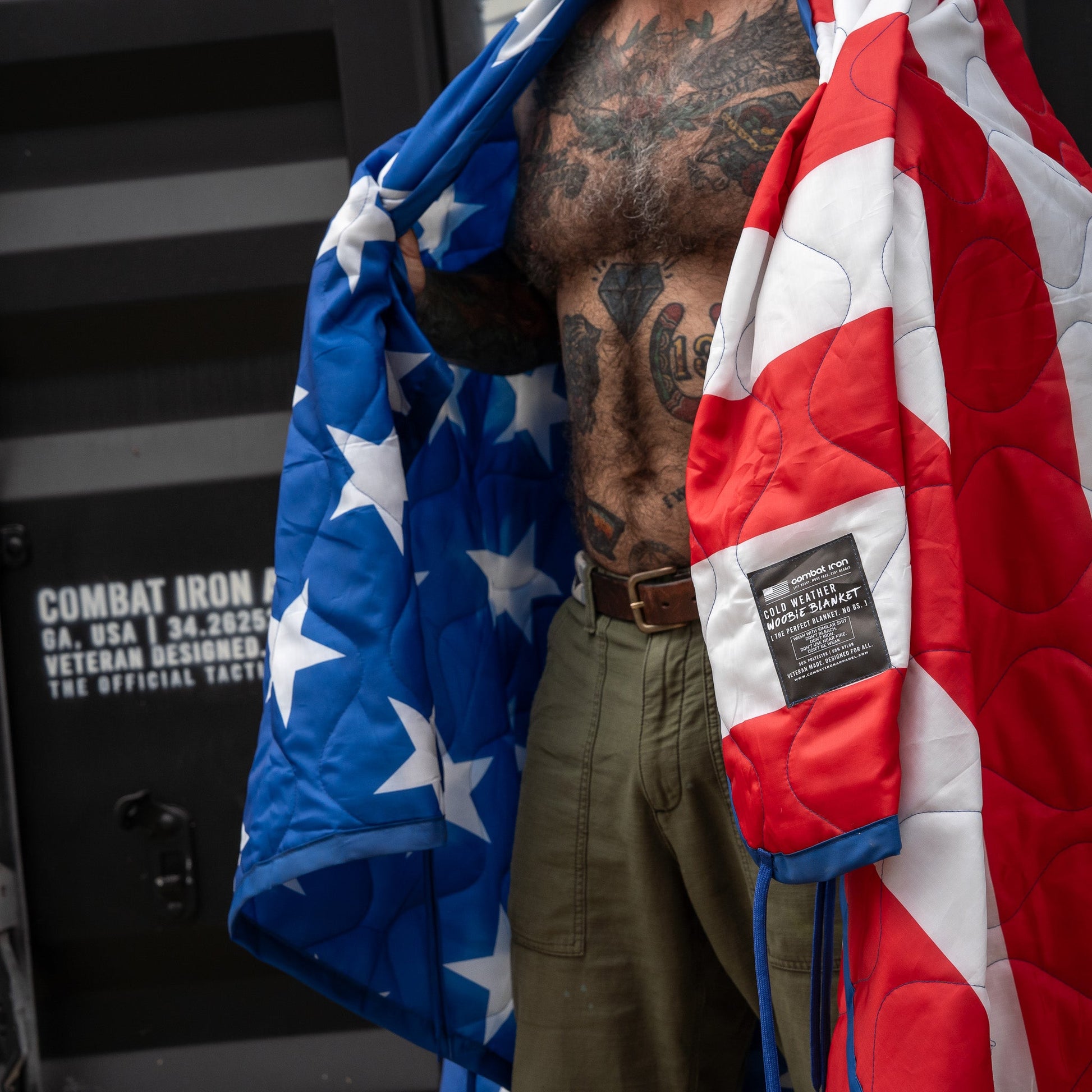 Measuring 62” wide by 82” tall, our branded Woobie blanket is made for full-body coverage without the bulk. Featuring a durable, water-resistant outer layer and a soft, cozy interior, it’s built tough for outdoor adventures but comfortable enough for everyday use. Equipped with corner tie-down strings, this blanket can double as a liner for your sleeping bag or be used as a makeshift cover, making it perfect for camping, hunting, or tactical use.