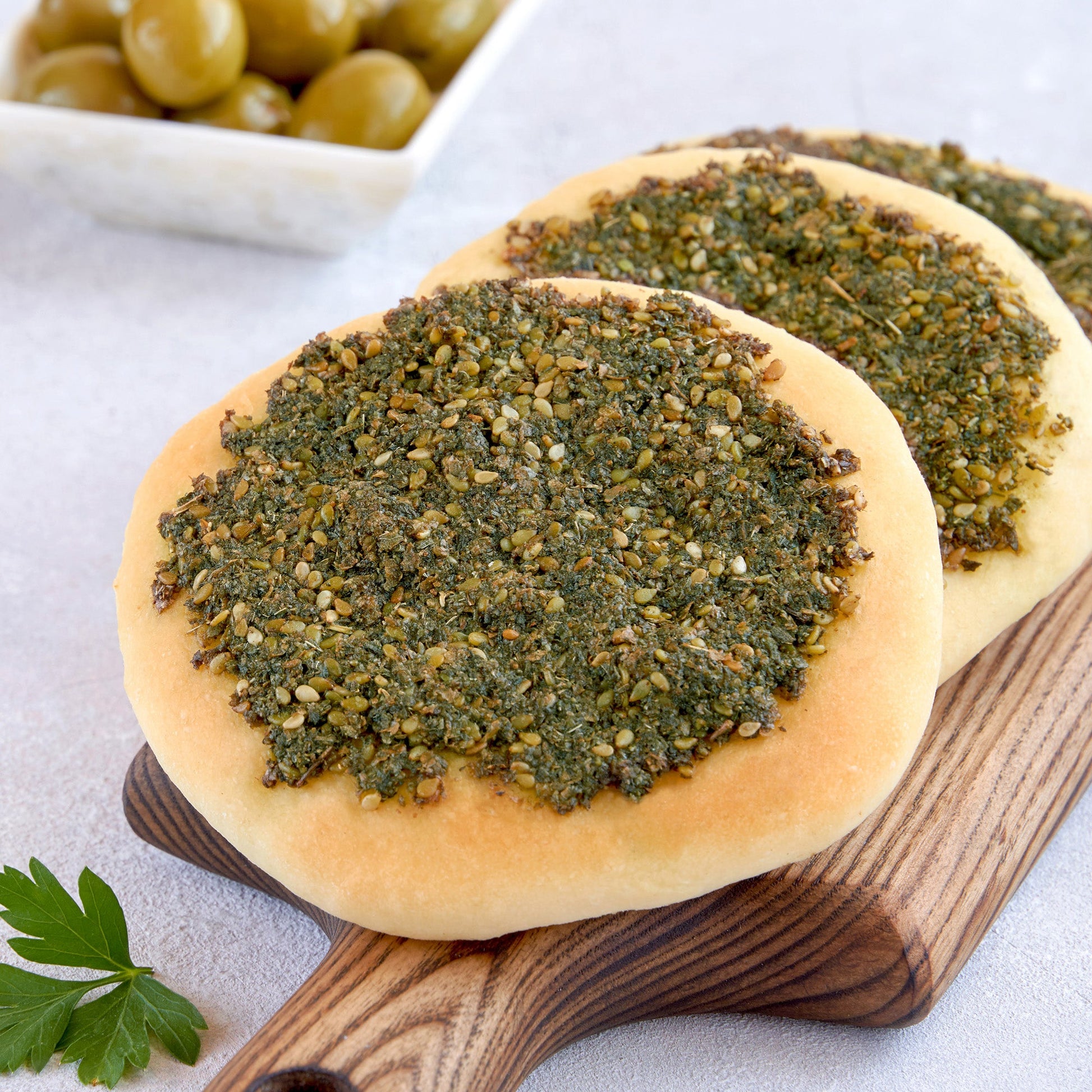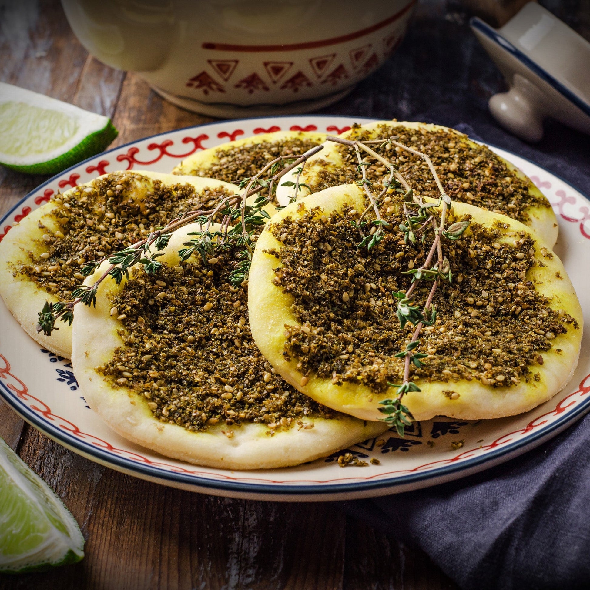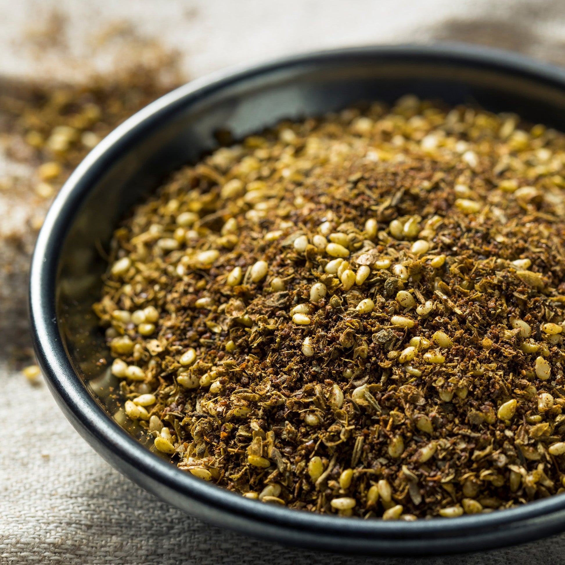 Zahtar is an authentic Middle Eastern mix of herbs and spices, featuring sumac, thyme, oregano, sesame seeds and salt.