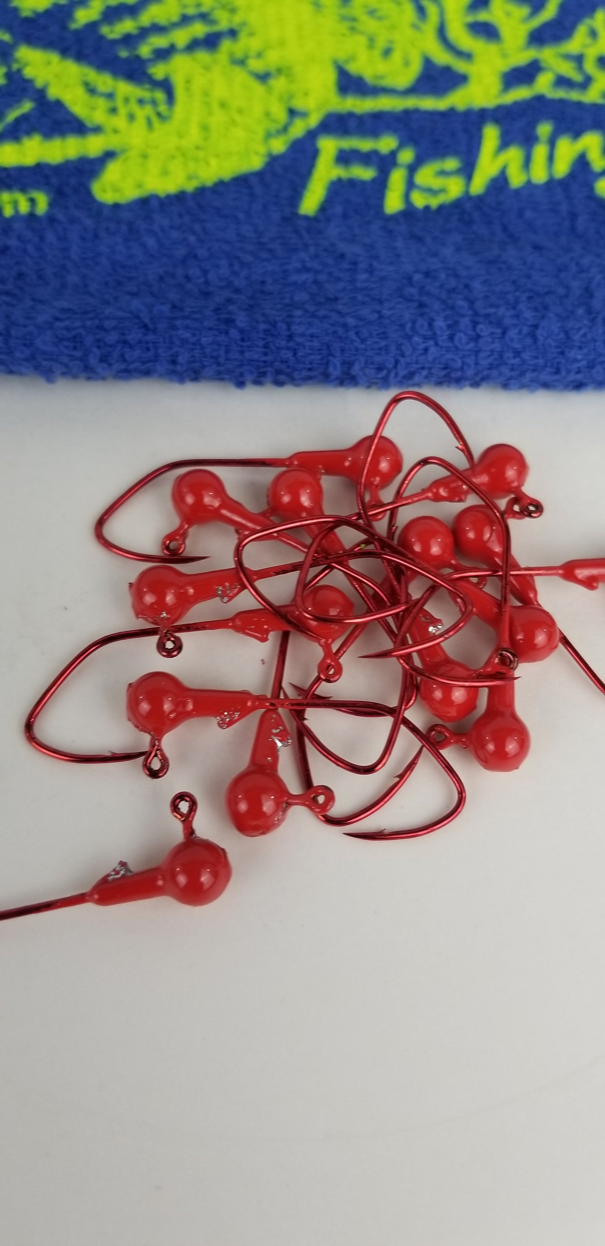 25ct.- 1/16oz. Painted Cam's DIESEL BUILT Candy Red Head w/ 1/0 Deadly Red Hooks (Chemically Sharpened)