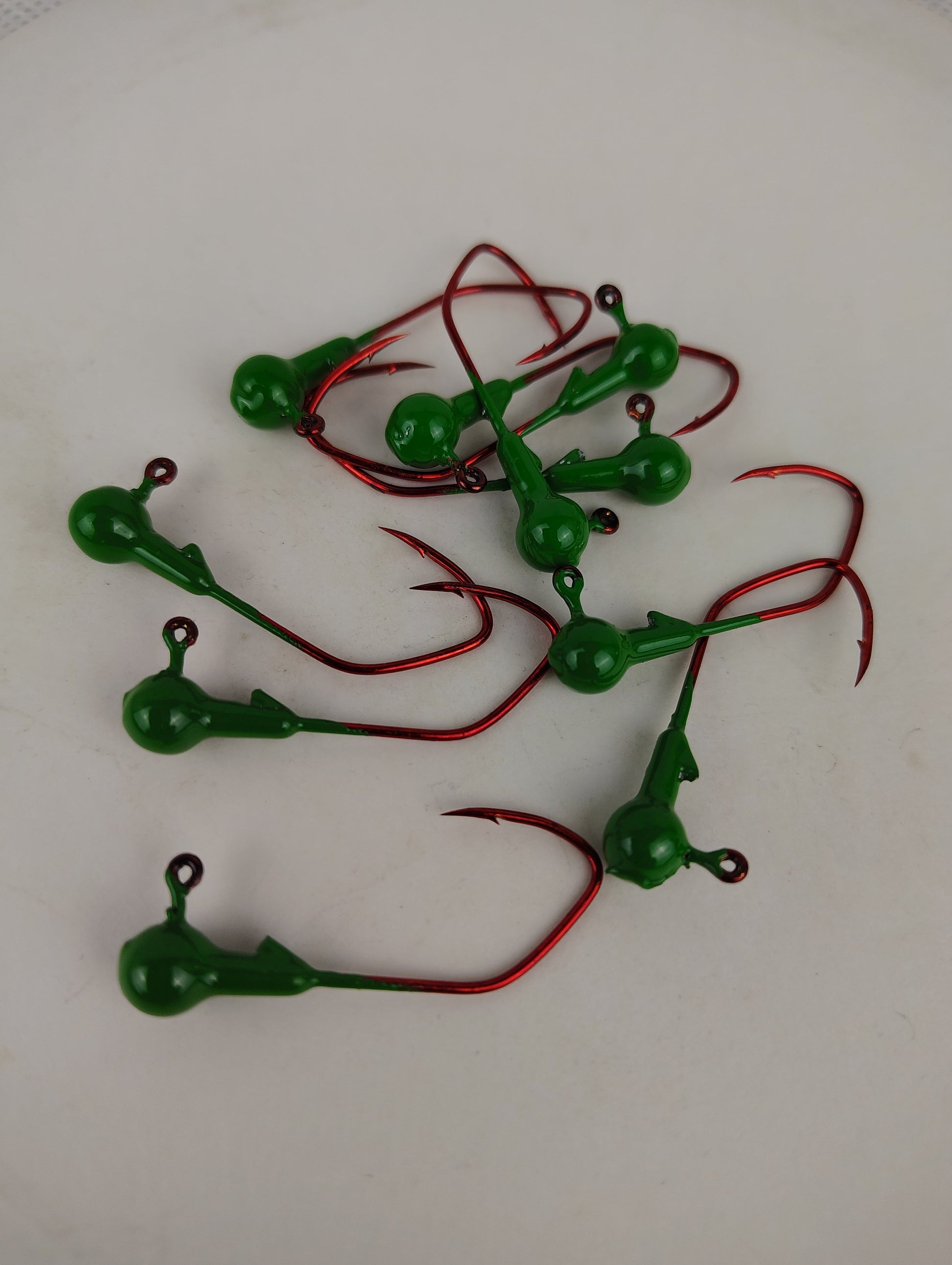 25ct.- 1/16oz. Painted Cam's DIESEL BUILT John Deere Green w/ 1/0 Deadly Blood Hooks (Chemically Sharpened)