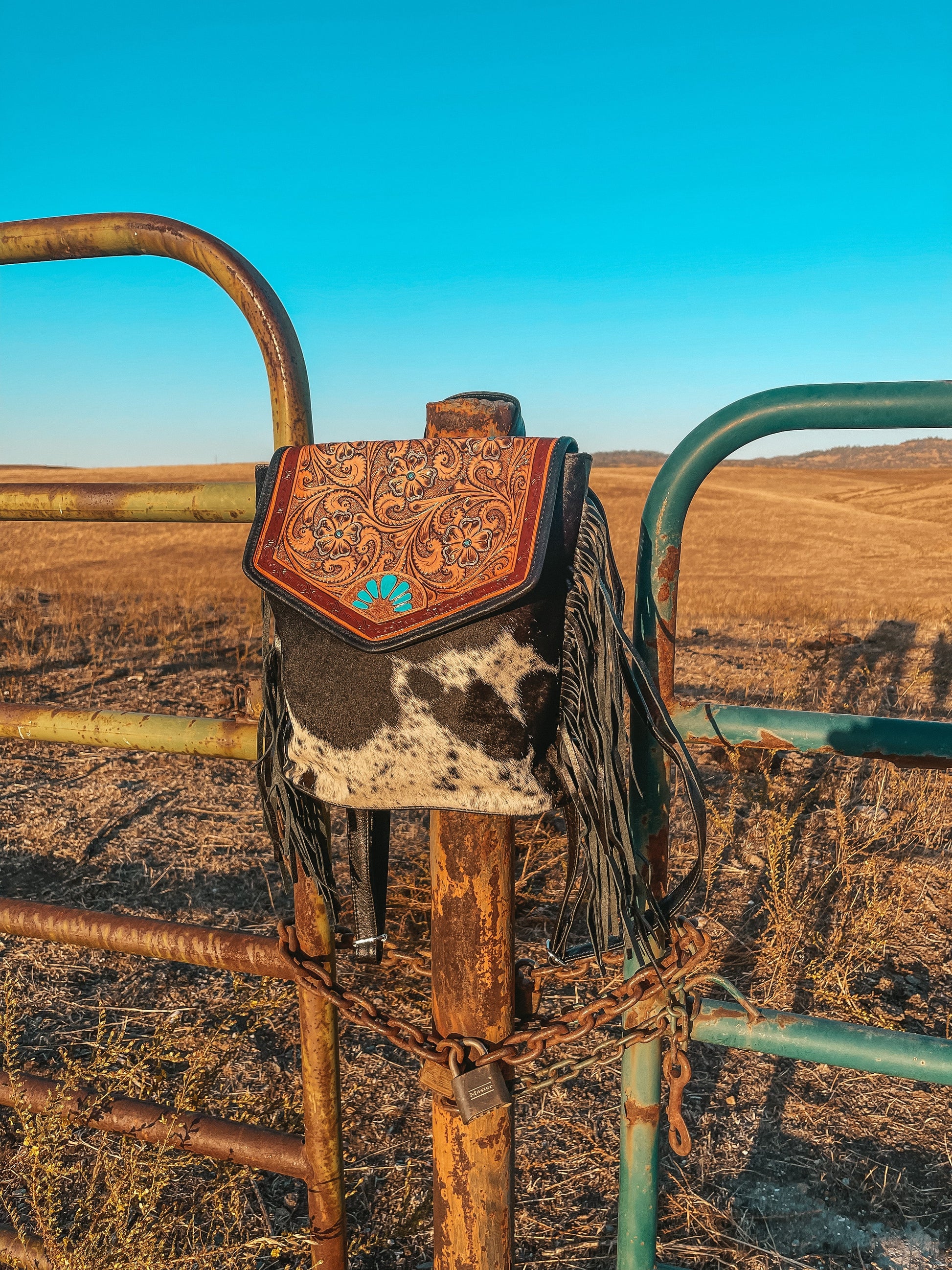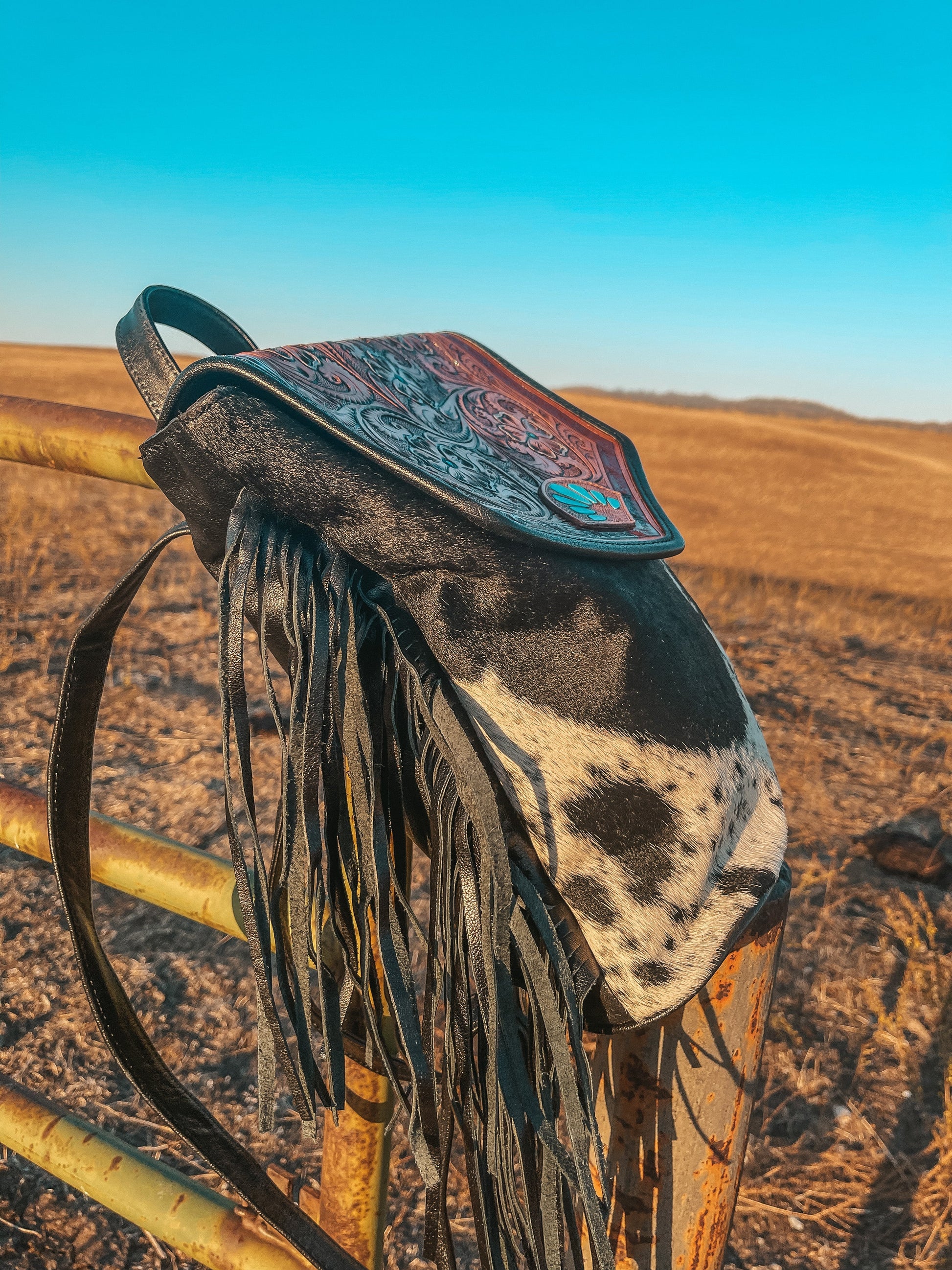 Your bag is truly one of a kind, hand painted, and made with a brand new unique cowhide piece. Please remember your bag will be different as it will be made with a brand new unique cowhide piece