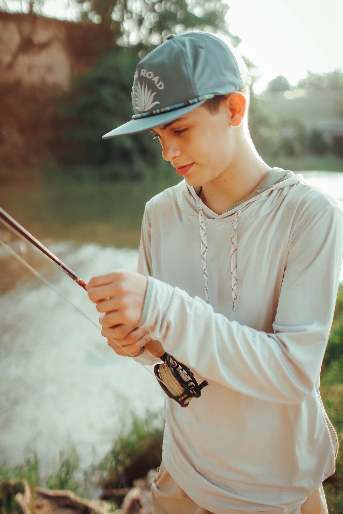 The agave snapback hat in a vibrant steel color has a pop of style with our fiesta rope accent. It also features our custom STASH POCKET!