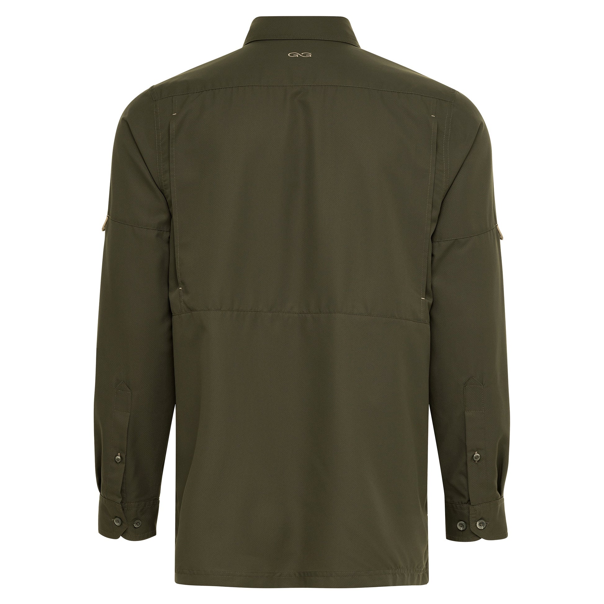 Built for those who thrive in the outdoors, the Original Shirt | Long Sleeve combines comfort and function for your adventures. Made from lightweight fiber with UPF 50+ sun protection, it shields you from the elements while keeping you cool with mesh-lined vents at the chest and back. Quick-drying and wrinkle-resistant, this shirt is perfect for the unpredictable demands of hunting, fishing, or outdoor exploration. Hidden chest pockets and a bungee loop system add secure storage and versatility, while stain resistance ensures durability in rugged conditions. With a hidden lay-flat collar and tagless design, it offers a polished, no-fuss fit that transitions effortlessly from the field to the lodge.