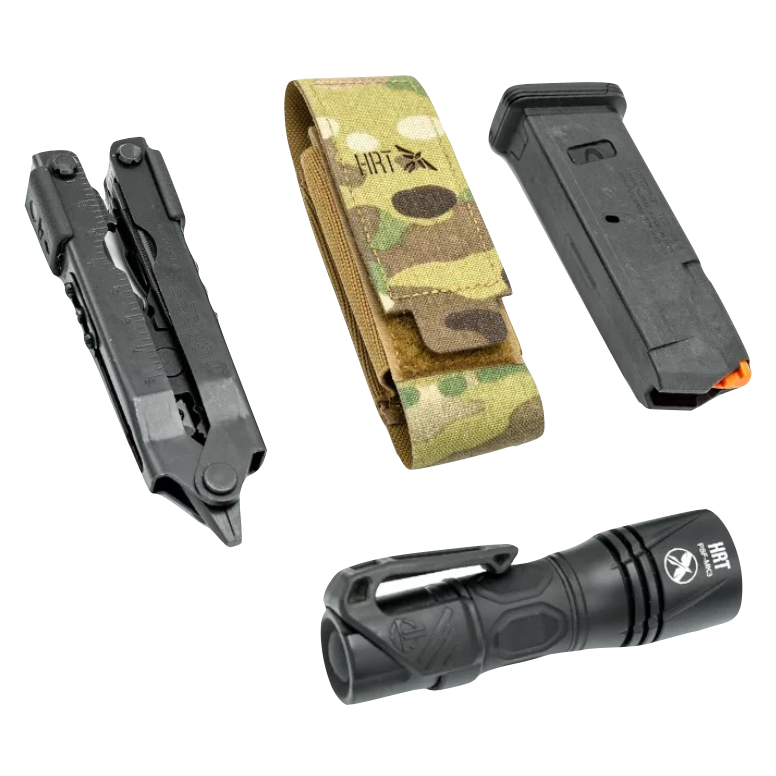 The HRT Utility Pouch will accept the most common 9/40 single or double-stack magazines, multi-tools, lights, or anything else you need to carry. The Velcro flap will hold your item securely or if you choose can be folded inside of the pouch to remain out of the way for quick access. The back of the pouch features several mounting locations for various belts, MOLLE, or positioning. The pouch is made from laminated 500/1000 Denier Cordura and is backed by our LIFETIME Warranty.