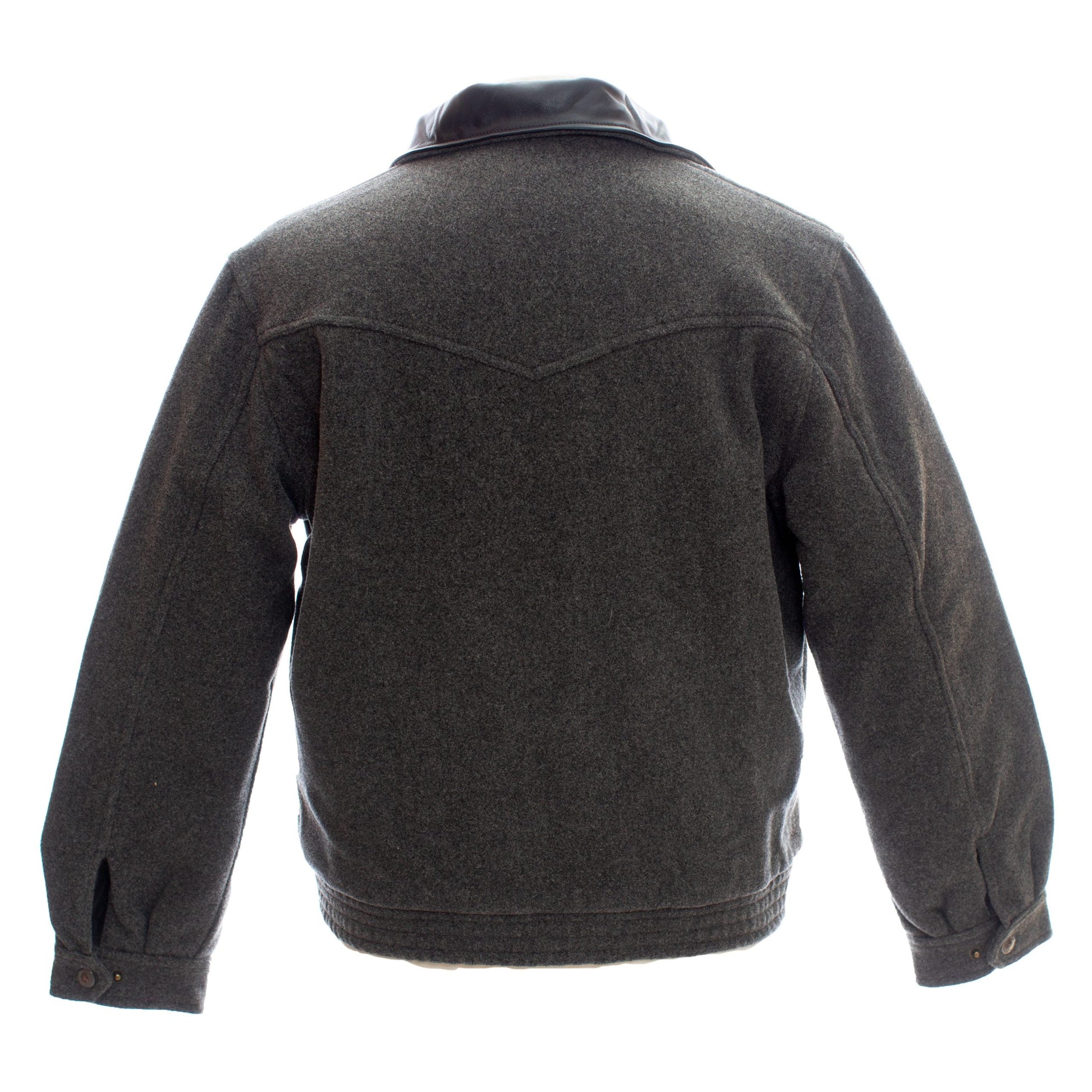 22 Ounce Australian Wool. Lambskin Leather Collar. Shoulder Western Yoke Front and Back. Reinforced Stitching throughout. Water Resistant. 2-Way Durable zipper with snapped storm flap. 1 Large inside wallet pocket with velcro closure. 2 Chest pockets with flaps and snap closures. Double hand pockets, 1 set with flaps and snap closures. Wrist cuffs have double snaps for adjustability. Quilted Polyester Satin Lining. Elastic gathered waistline.