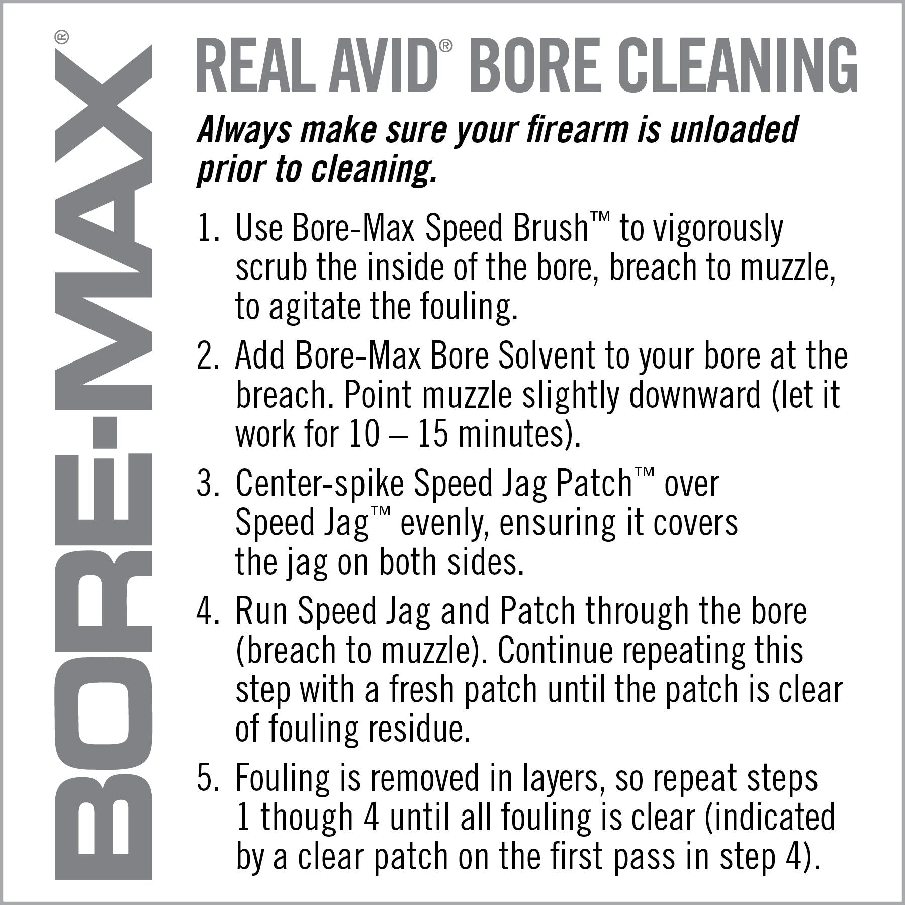 The Bore-Max Speed Jag and Speed Jag Patches Multi-Cal Pack includes 10 popular pistol and rifle calibers in one convenient storage case. Speed Jags and Speed Jag Patches are sized for precise bore fitment and optimal cleaning. The 4X greater bore contact delivers a cleaner bore faster, allowing more time at the range.