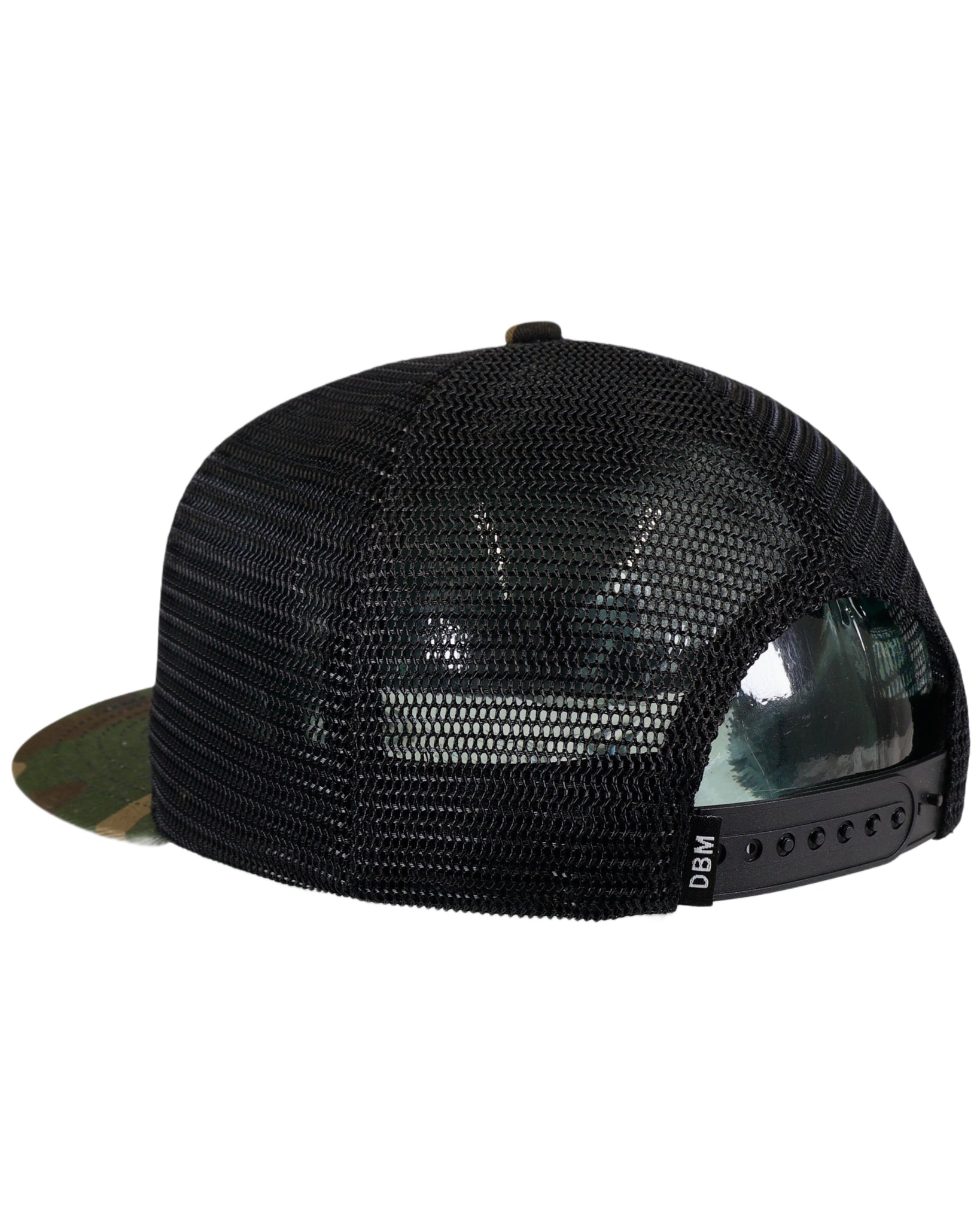 Trucker mesh back. Matching plastic snap. Hard buckram. Matching undervisor.
